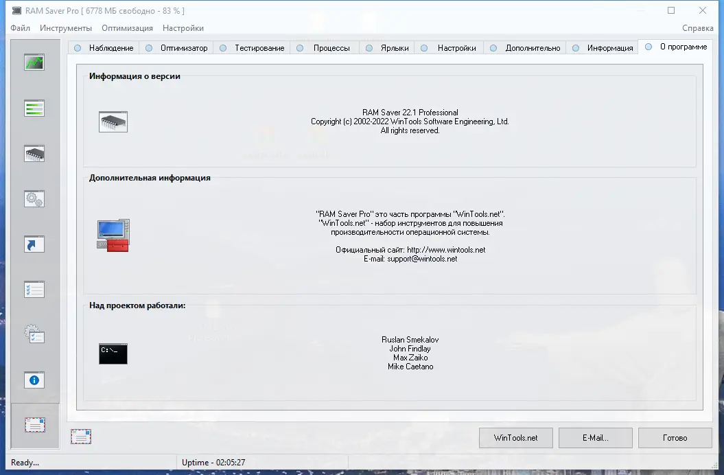 RAM Saver Professional — утилита для мониторинга, очистки и оптимизации оперативной памяти, направленная на повышение общей производительности системы. Программа эффективно управляет RAM, устраняя утечки памяти, дефрагментируя системные ресурсы и временно перемещая неактивные процессы в файл подкачки. Это позволяет значительно ускорить работу приложений, требующих высокой нагрузки на процессор и оперативную память, даже на устаревших или слабых компьютерах.