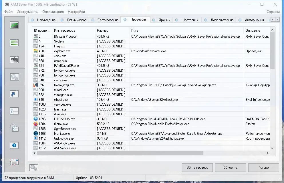- Наличие профессиональный мониторинг и детальной статистики использования RAM