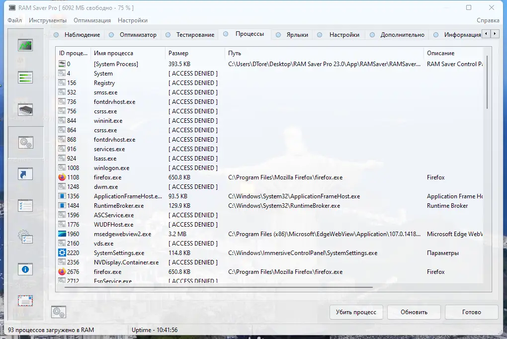 RAM Saver — это программное обеспечение для тонкой настройки и управления оперативной памятью в системах на базе Windows. Утилита позволяет эффективно контролировать использование RAM, устранять утечки памяти и повышать общую отзывчивость компьютера, особенно при работе с ресурсоёмкими приложениями. Благодаря продуманному интерфейсу и широкому набору инструментов, программа подходит как для обычных пользователей, так и для тех, кто ищет более глубокий контроль над системными процессами. Она способна автоматически освобождать память, дефрагментировать её и оптимизировать производительность процессора за счёт рационального распределения ресурсов. Работа в фоновом режиме не создаёт излишней нагрузки, что делает использование приложения комфортным даже на устройствах со скромными характеристиками.