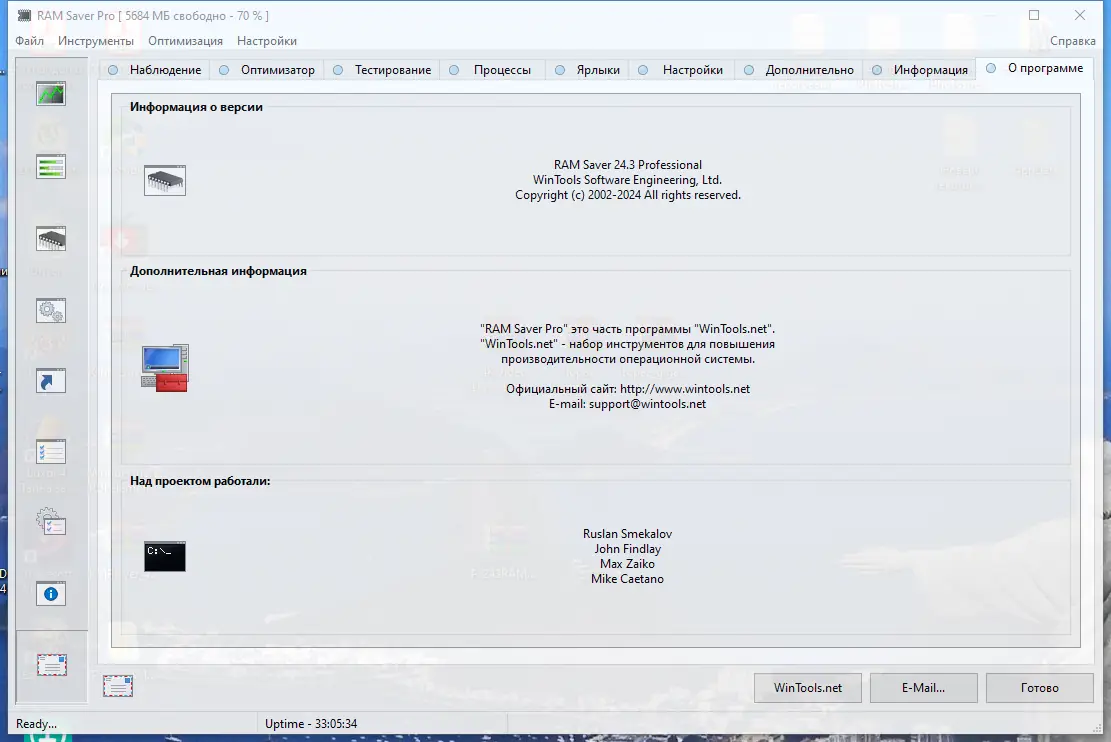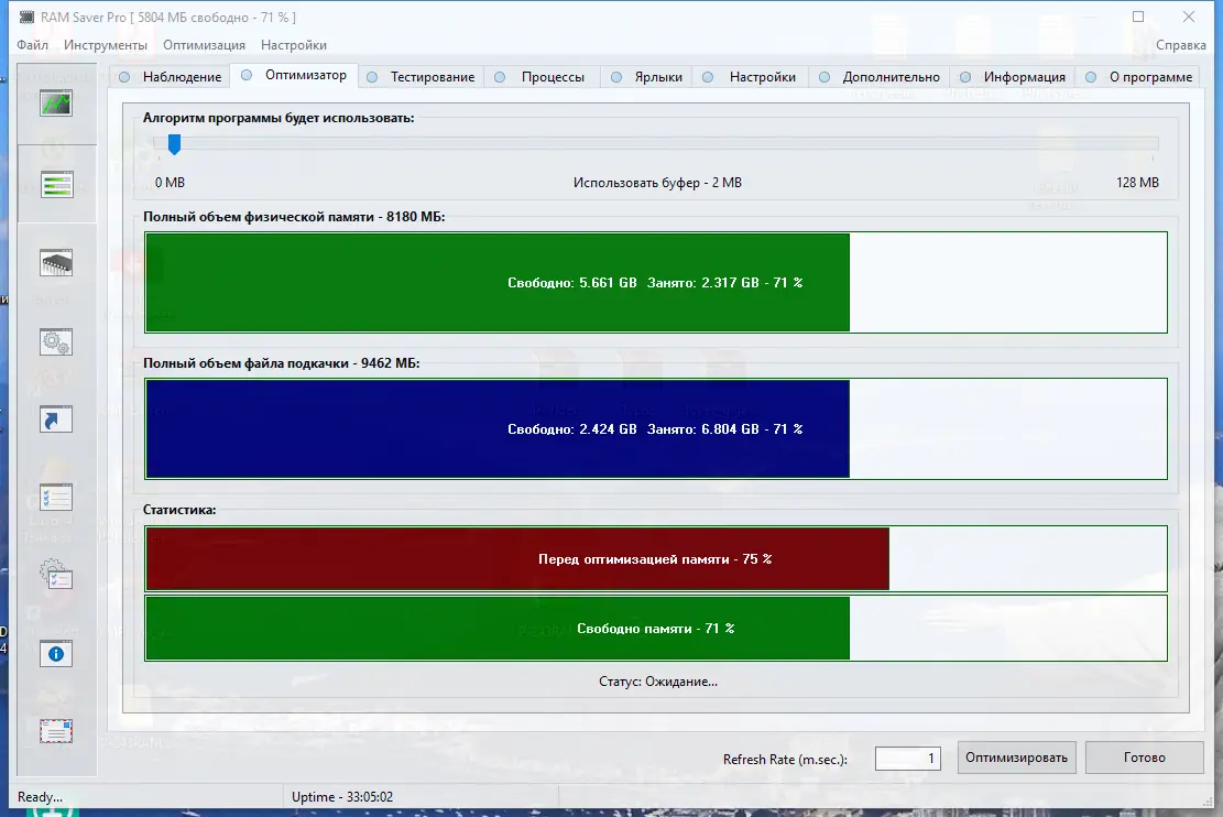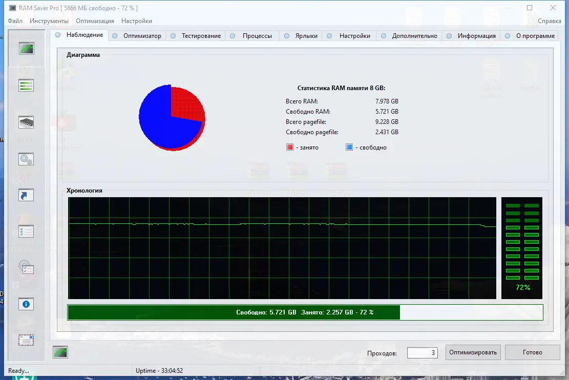 RAM Saver Professional — программное обеспечение для глубокой оптимизации оперативной памяти, повышающее общую отзывчивость системы за счёт эффективного управления ресурсами. Утилита подходит как для пользователей с мощными компьютерами, так и для владельцев устаревших устройств, где каждый мегабайт RAM имеет значение. Программа автоматически контролирует загрузку памяти, устраняет утечки и предотвращает замедление работы системы.