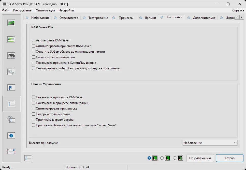 Работа с RAM Saver