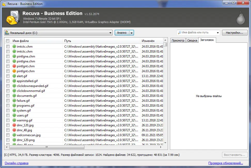 - Наличие визуальной индикации состояния файлов для оценки шансов на восстановление
