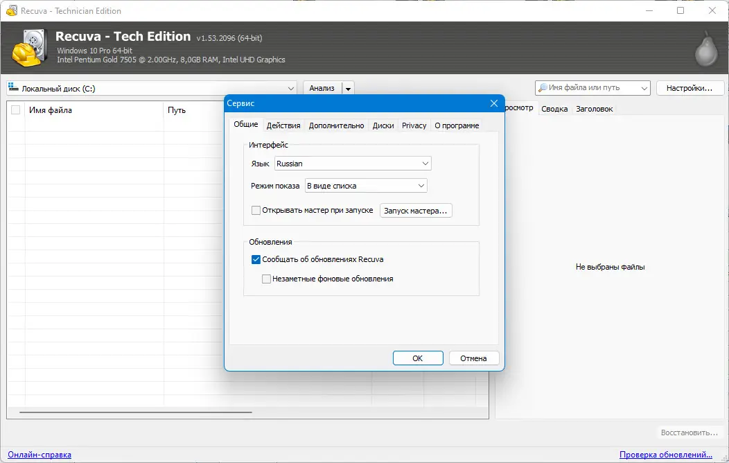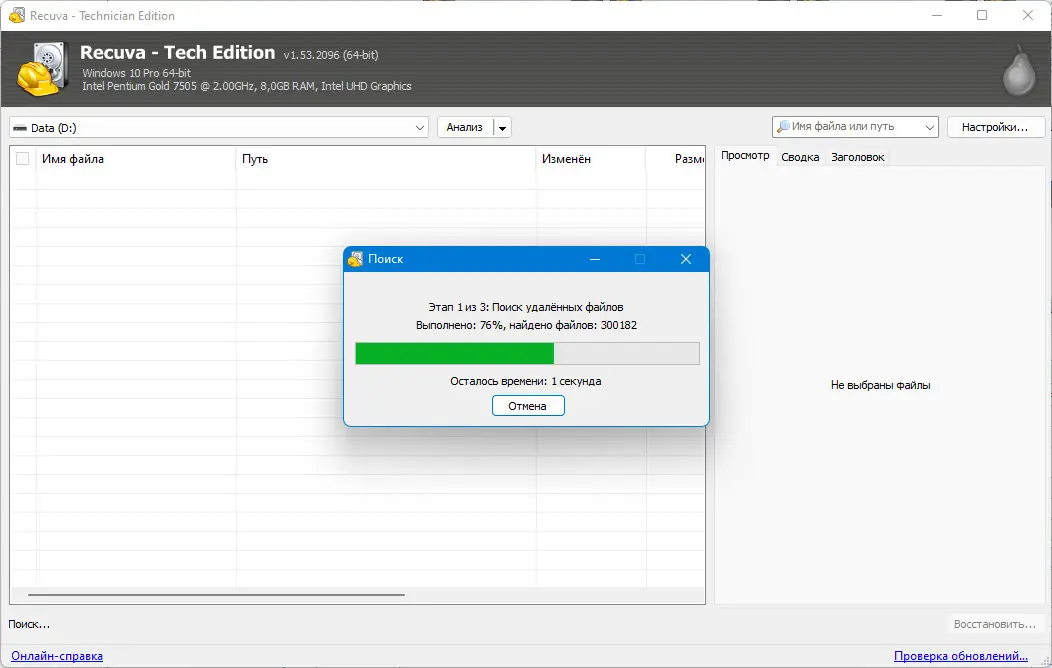 Работа с Recuva