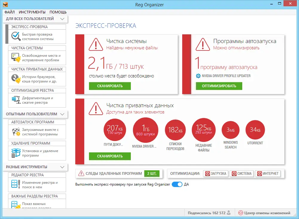 Reg Organizer — многофункциональная утилита для комплексной оптимизации и обслуживания операционной системы Windows. Программа помогает ускорить работу компьютера за счёт глубокой чистки реестра, управления автозагрузкой и полного удаления программ вместе с их остаточными файлами и записями. Инструмент подходит как для начинающих пользователей, так и для тех, кто хочет получить более точный контроль над системой.