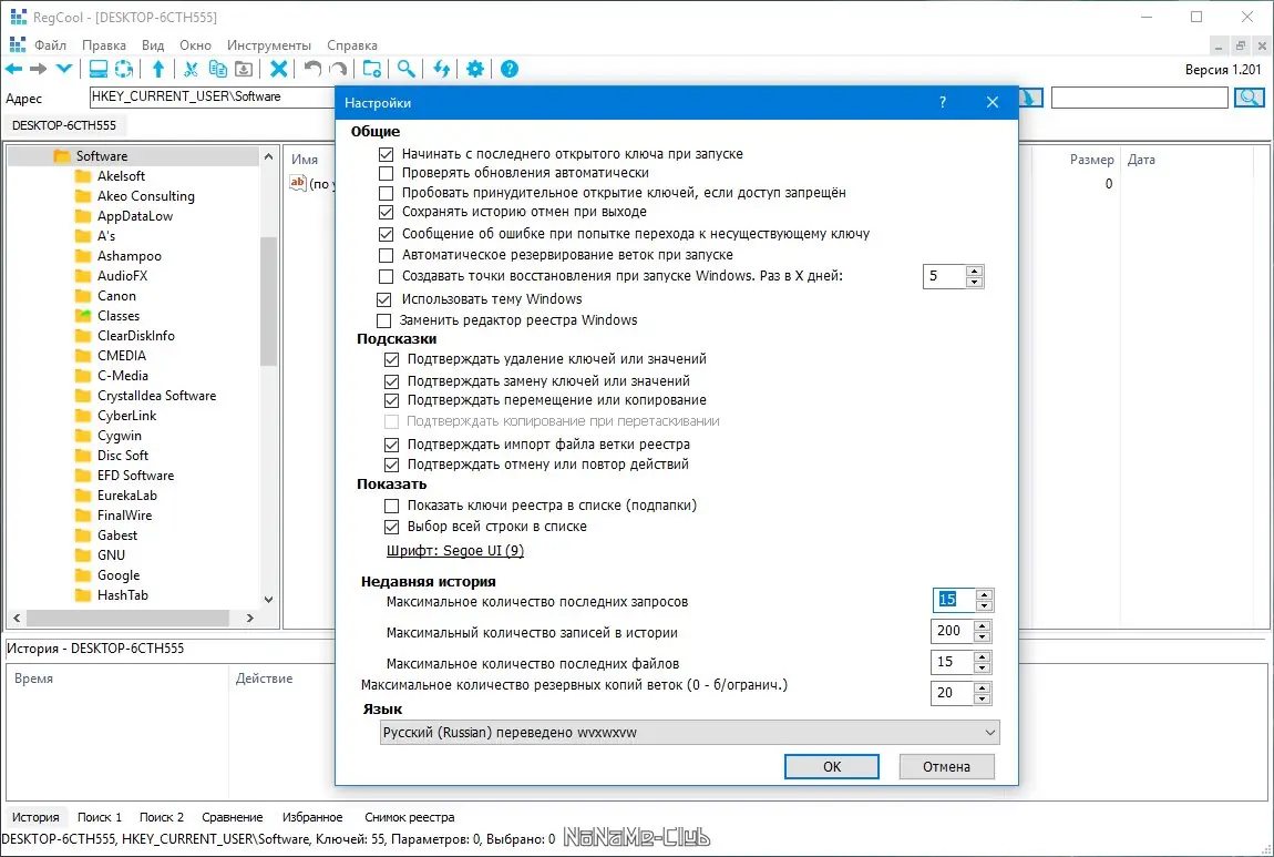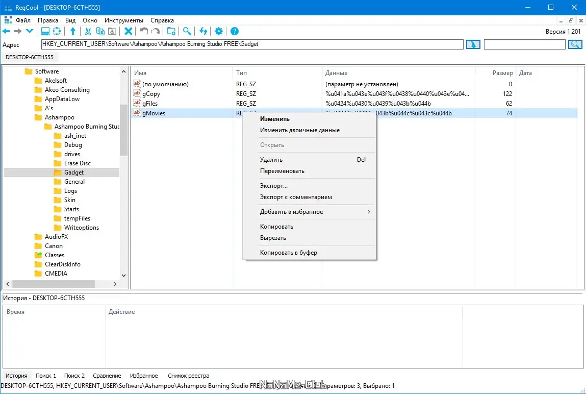 Работа с RegCool