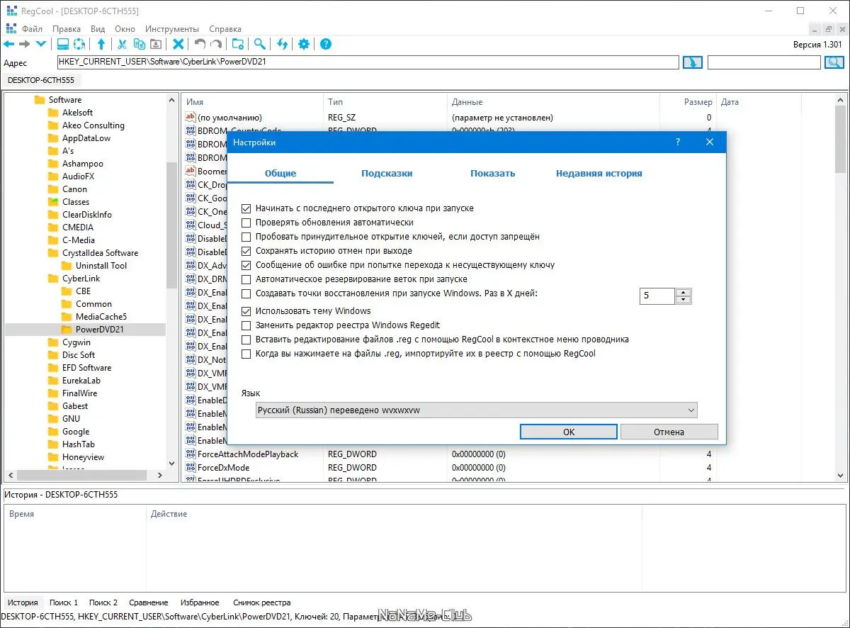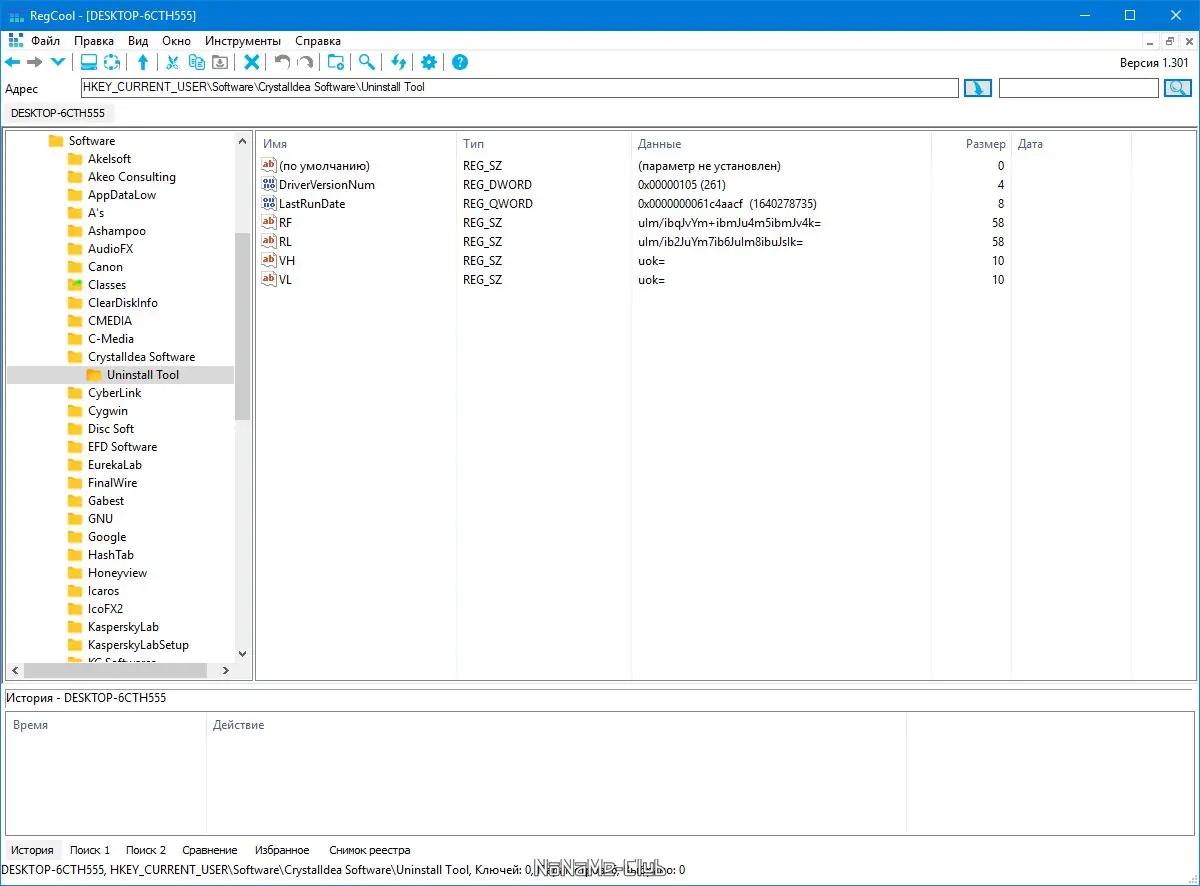 Работа с RegCool