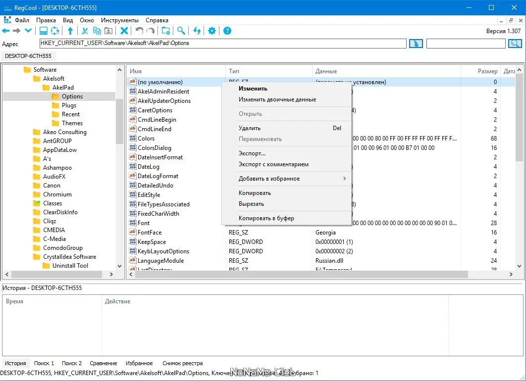 - Работа с закладками и избранными ключами для быстрого доступа к часто используемым параметрам.