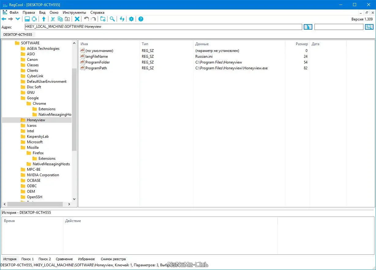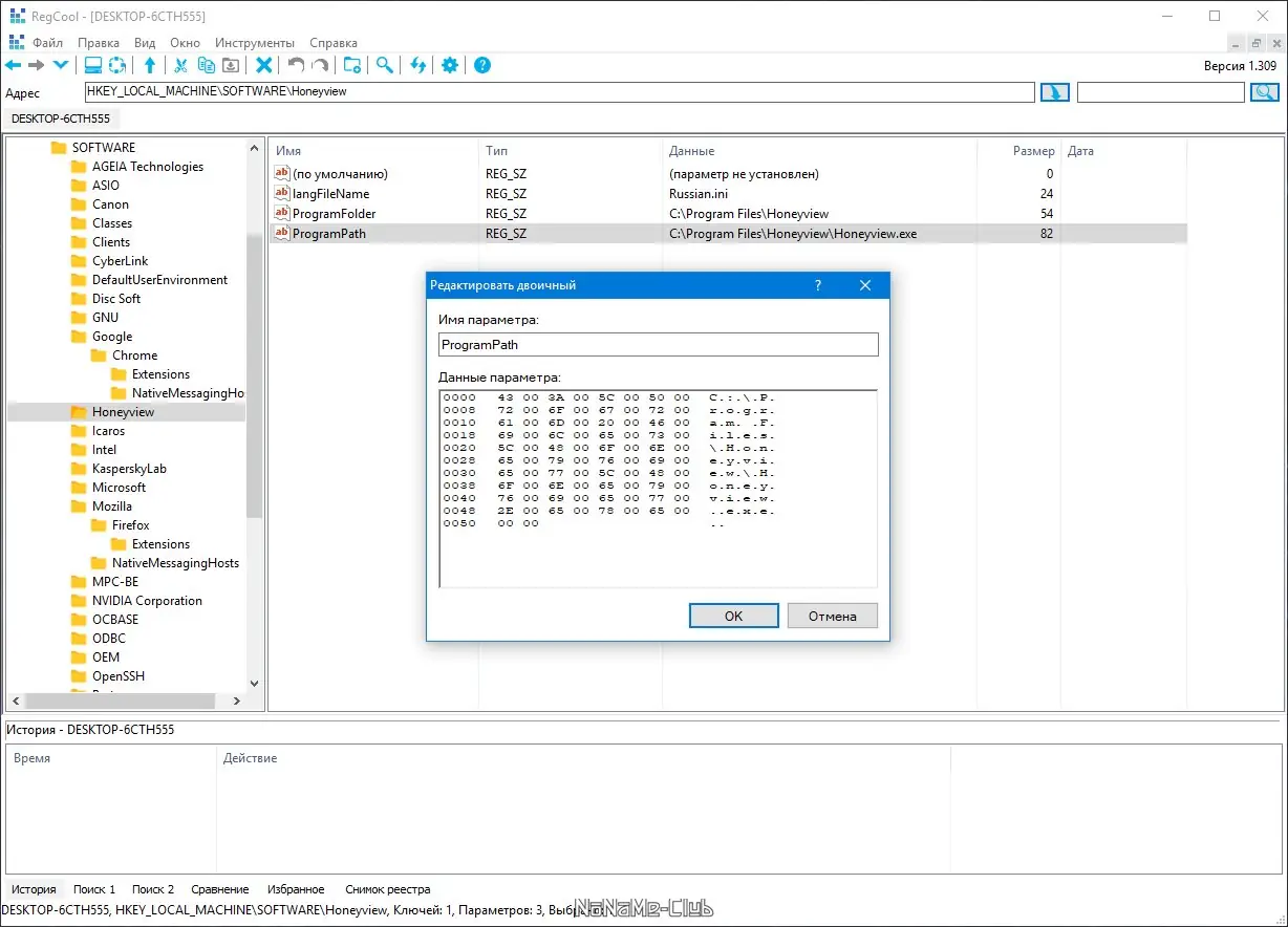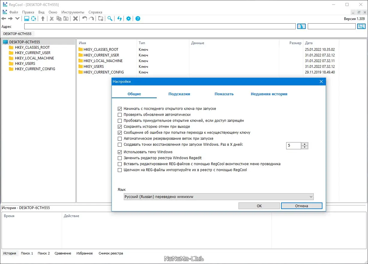 Работа с RegCool