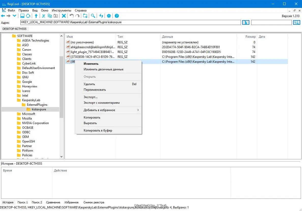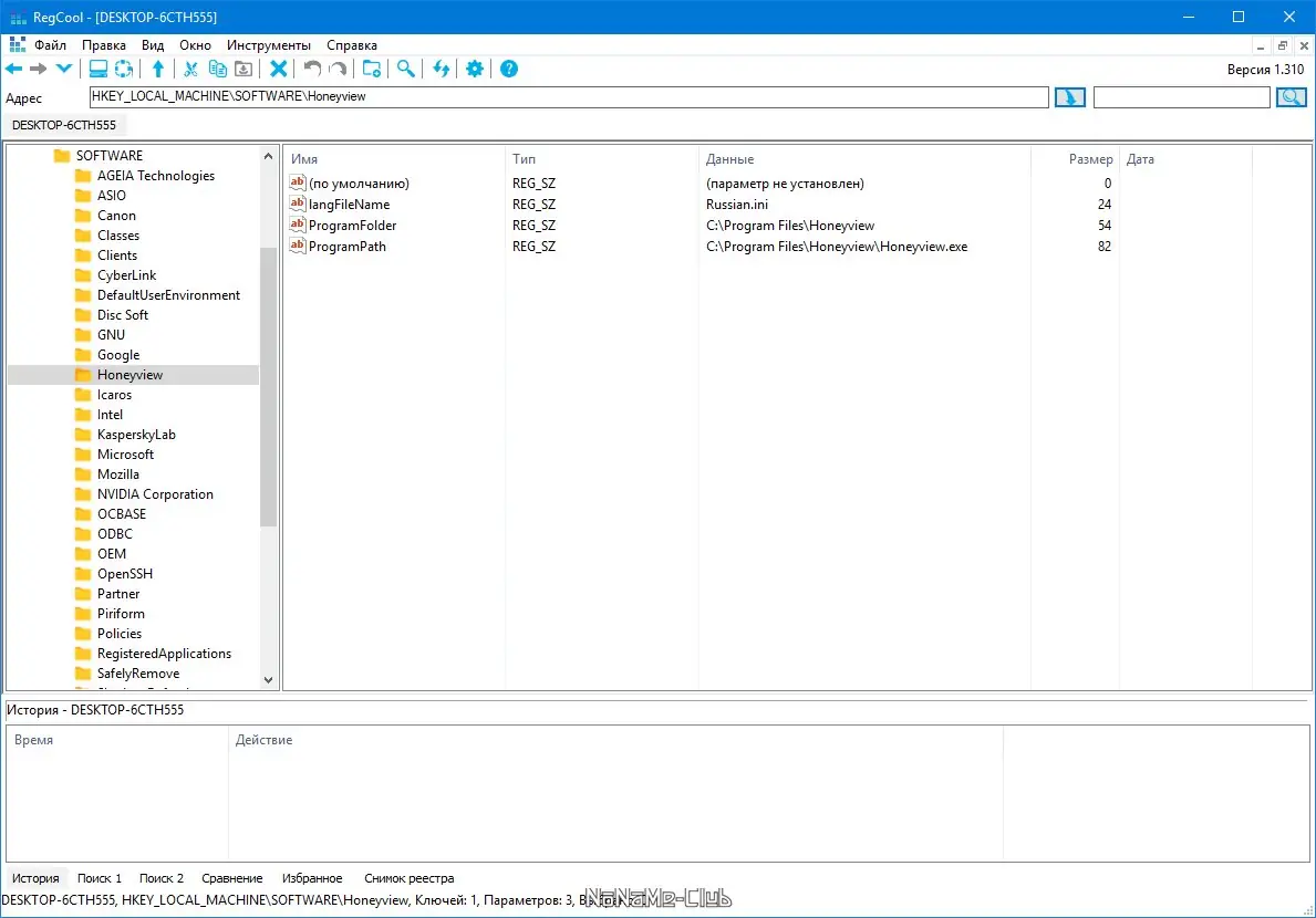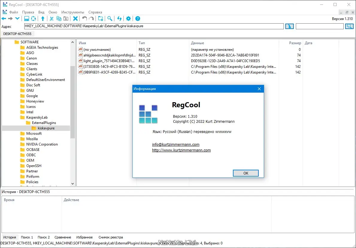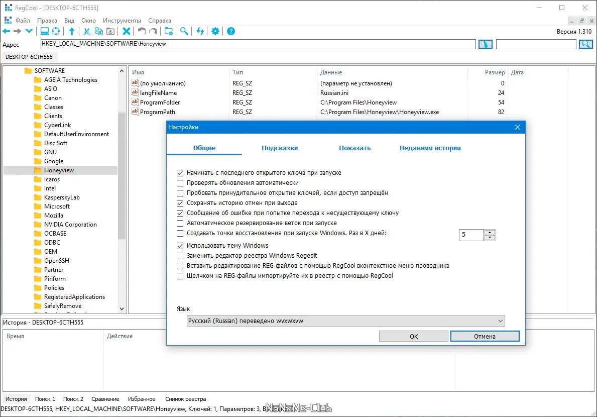 Работа с RegCool
