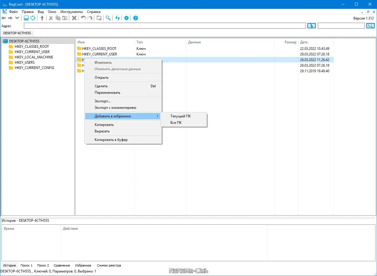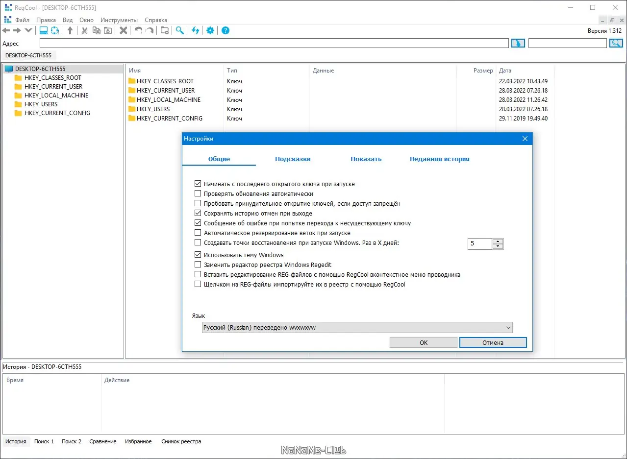 Работа с RegCool