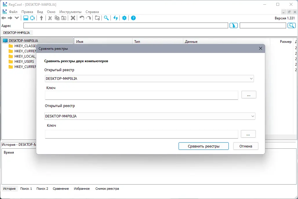 Возможность сравнения реестров — ключевое преимущество RegCool перед стандартными утилитами.