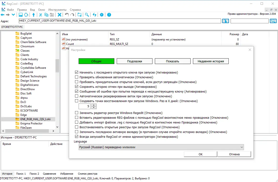 - Поддержка портативных версий позволяет запускать RegCool с флеш-накопителя без установки.