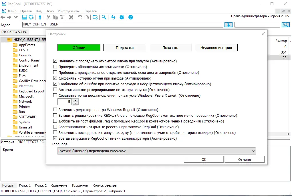 Работа с RegCool