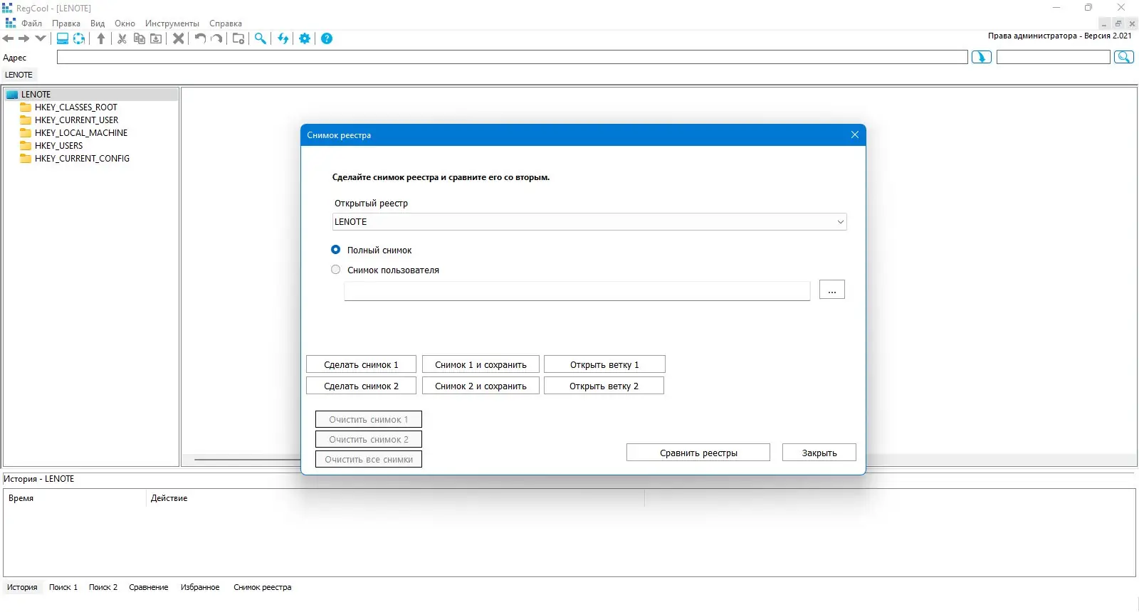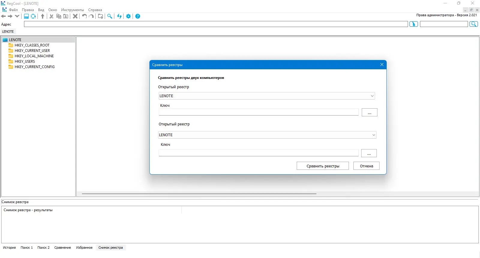 Сравнение реестров — ключевое преимущество RegCool перед встроенным редактором, позволяющее точно отслеживать изменения и откатывать нежелательные правки.