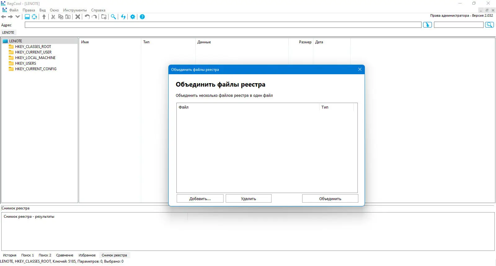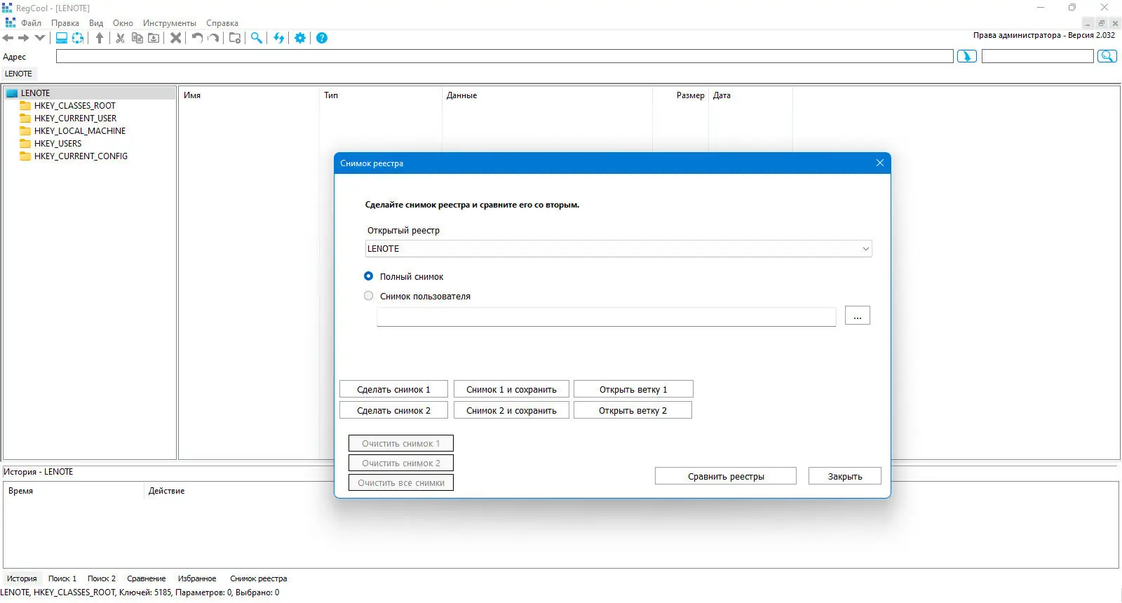 Сравнение снимков реестра с помощью встроенной интеграции RegShot помогает отслеживать изменения и возвращать систему в стабильное состояние.
