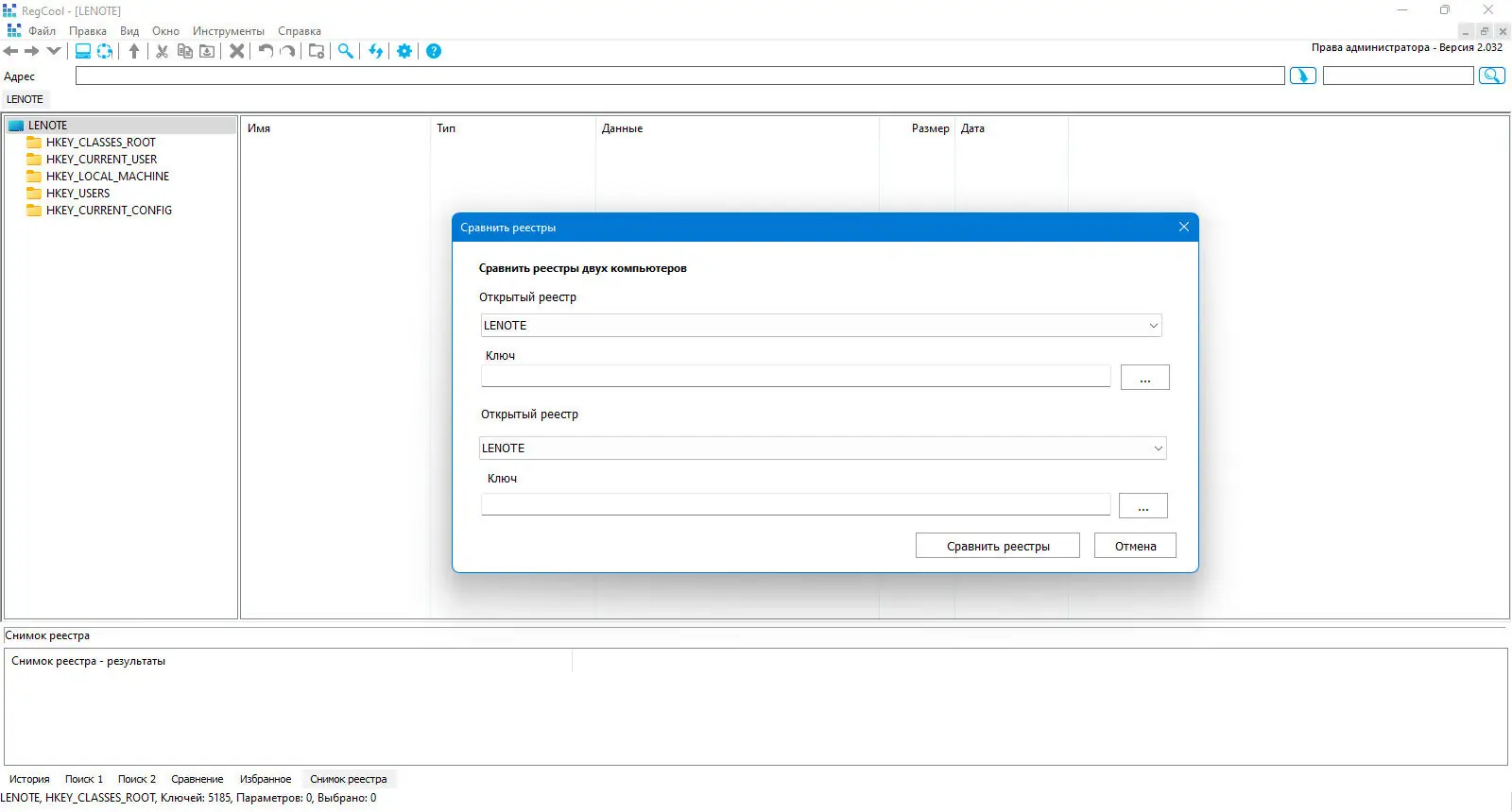 - Функция сравнения двух разделов реестра, позволяющая выявить различия после установки программ или обновлений.