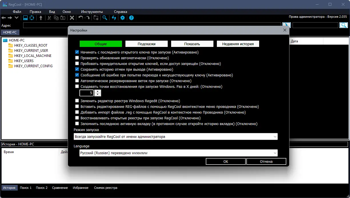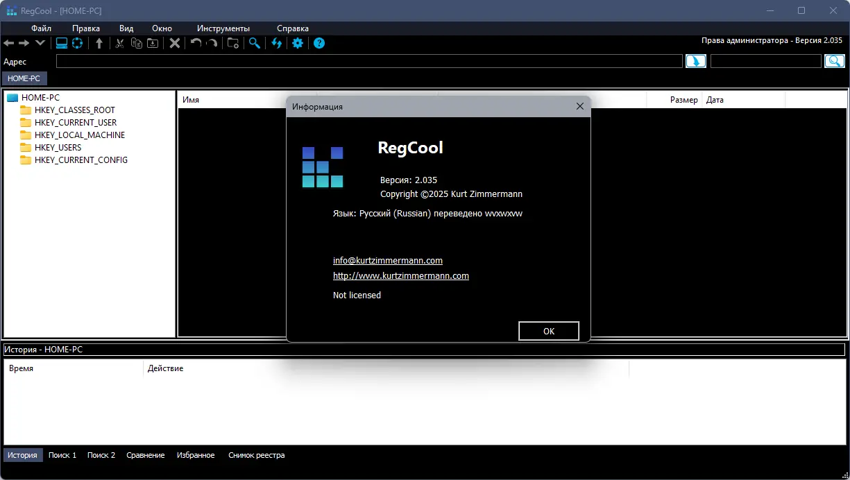 Пользоваться RegCool просто: интерфейс организован в виде двух панелей, как в проводнике, что ускоряет навигацию. Пользователь может копировать, вырезать, перемещать и переименовывать ключи и значения, а также импортировать и экспортировать фрагменты реестра в файлы. Встроенный инструмент дефрагментации помогает оптимизировать структуру реестра, что положительно сказывается на скорости работы системы. Для безопасной работы предусмотрена функция создания резервных копий перед внесением изменений, а также интеграция с RegShot позволяет сравнивать снимки реестра, сделанные в разное время. Автозаполнение в адресной строке ускоряет переход к нужным путям, а поддержка перетаскивания значений упрощает редактирование. Все действия логируются, что даёт полный контроль над внесёнными правками.