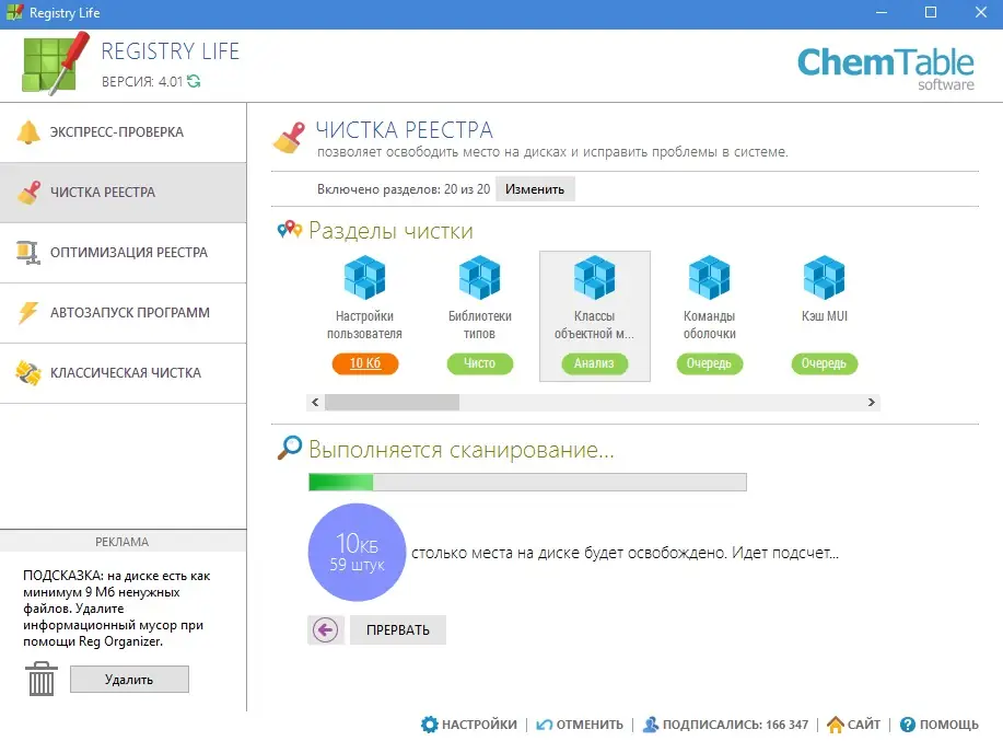 - Удаляет информационный мусор, оставшийся после деинсталляции программ, что освобождает ресурсы и улучшает отклик системы.