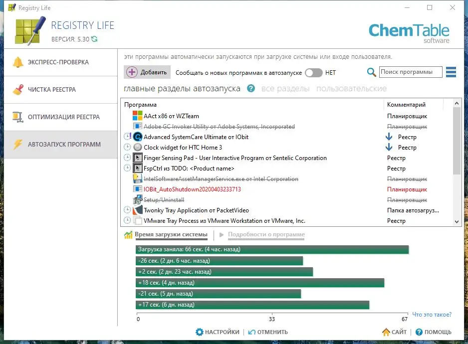 - Очистка разделов автозагрузки и контекстного меню от ненужных или неработающих элементов.