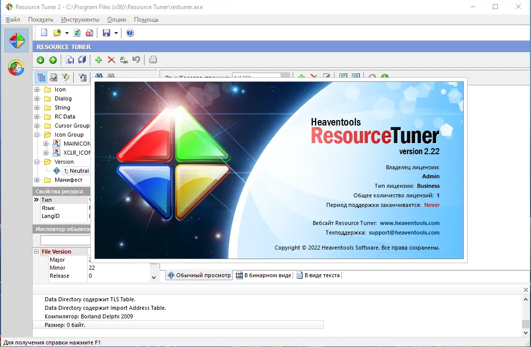 Resource Tuner Business — мощное средство для анализа и модификации ресурсов Windows-приложений, позволяющее просматривать, редактировать и извлекать иконки, изображения, строки, диалоги и другие элементы графического интерфейса без доступа к исходному коду. Подходит как для разработчиков, так и для пользователей, желающих переосмыслить внешний вид программ.