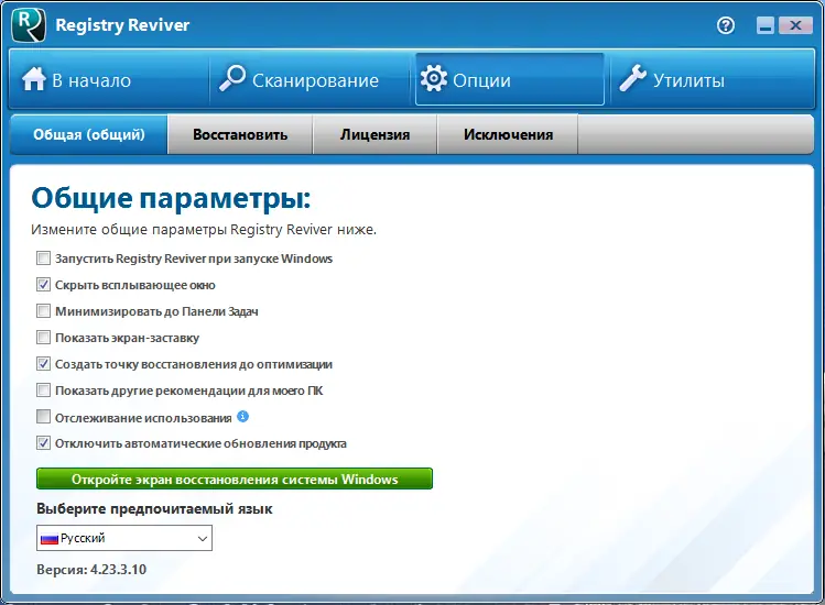 Работа с ReviverSoft Registry Reviver