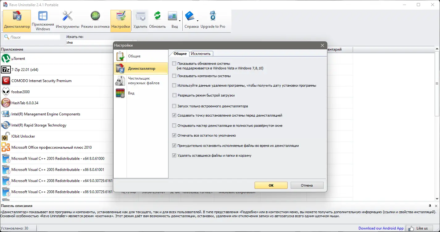Revo Uninstaller — это мощная утилита для точного и безопасного удаления программ с компьютера. Программа не только удаляет приложения, но и очищает систему от остаточных файлов, папок и записей реестра, оставшихся после деинсталляции. Благодаря продвинутому алгоритму анализа и встроенным инструментам оптимизации, она помогает поддерживать систему в чистоте и улучшать её производительность. Режим «Охотник» и дополнительные утилиты делают процесс управления установленными программами максимально простым и эффективным.