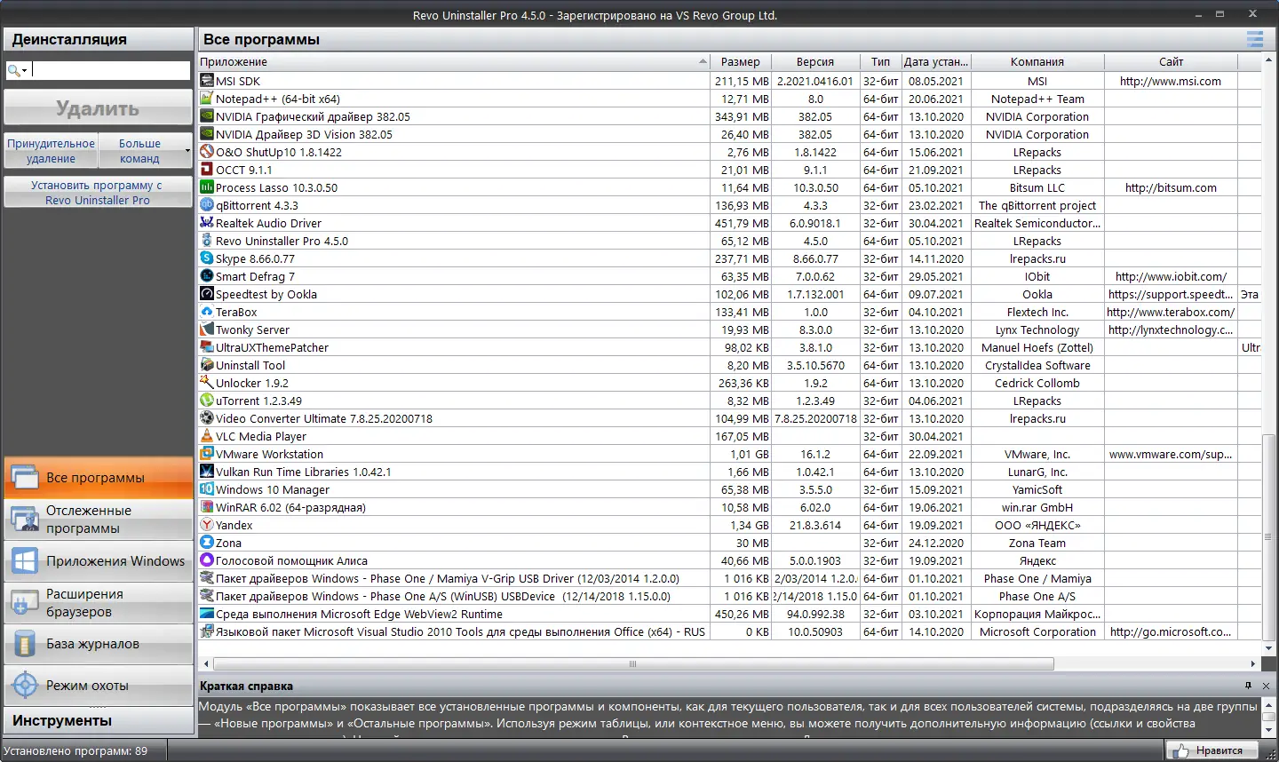 Revo Uninstaller — это мощная утилита для полного удаления программ и очистки системы от остаточных файлов, папок и записей реестра. Программа сочетает в себе продвинутые алгоритмы сканирования, режим охотника, инструменты очистки и управления автозагрузкой, обеспечивая высокую точность деинсталляции.
