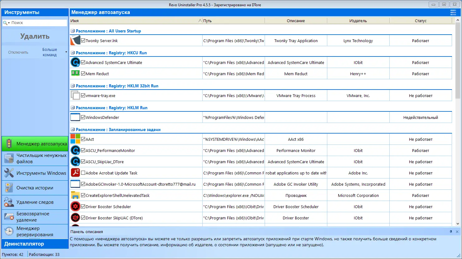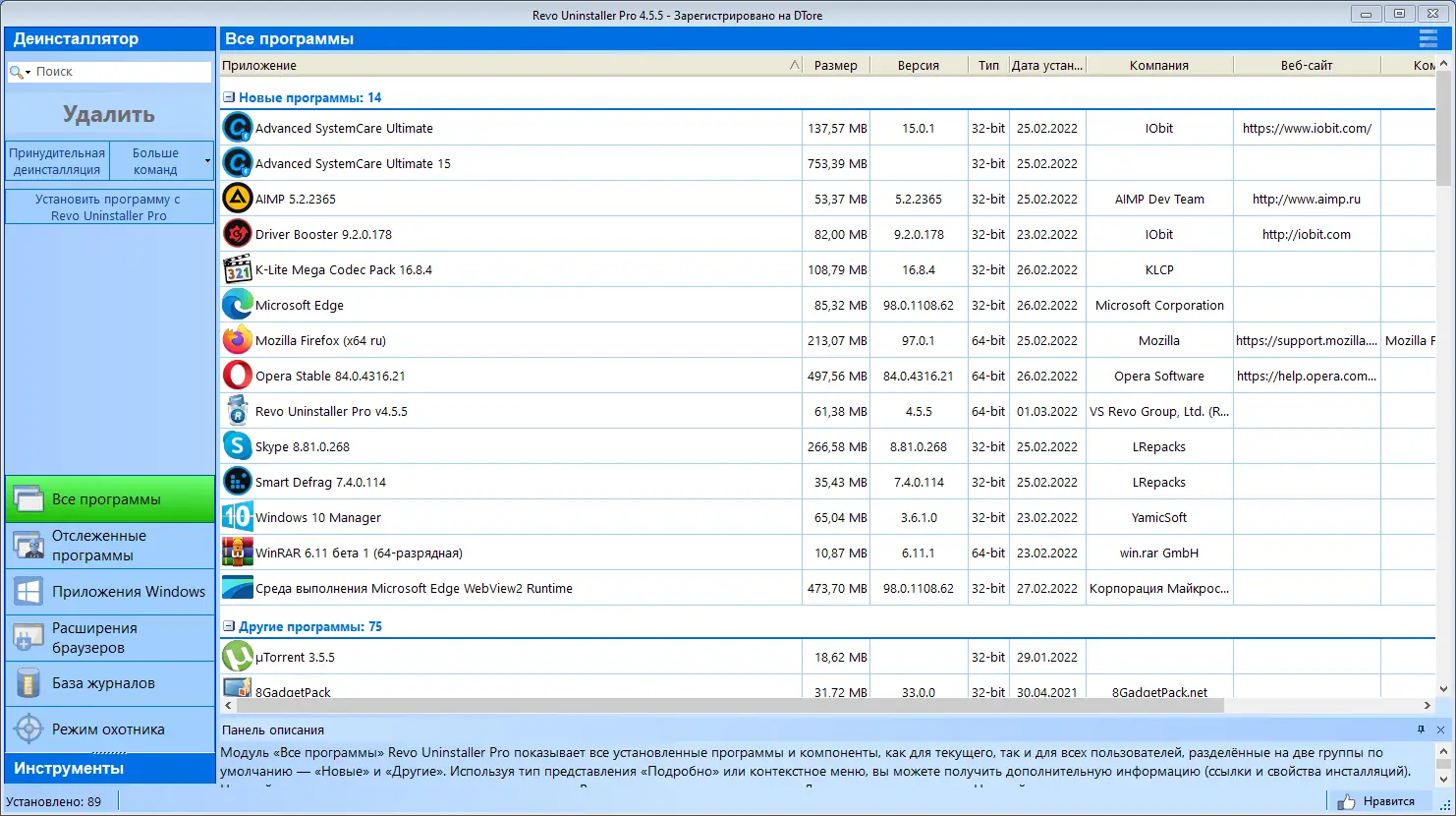 Описание Revo Uninstaller