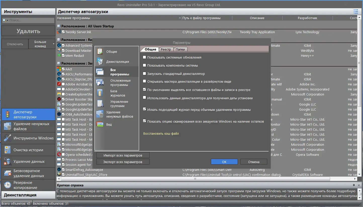 Revo Uninstaller сочетает в себе простоту интерфейса и высокую эффективность при удалении программ и очистке системы
