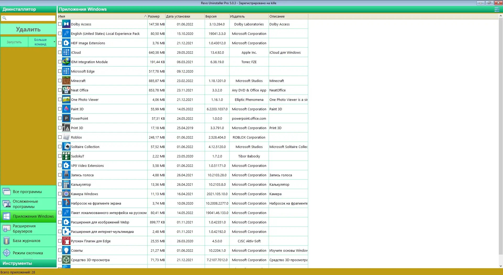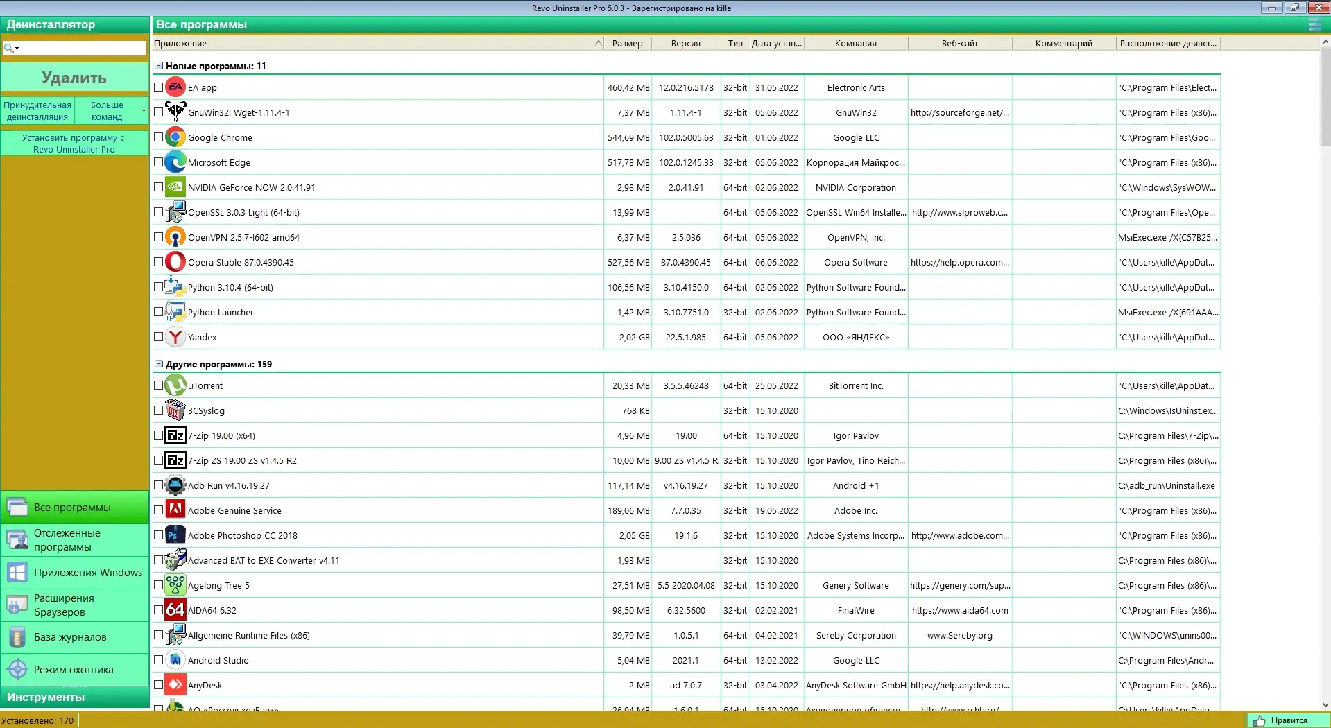 Работа с Revo Uninstaller