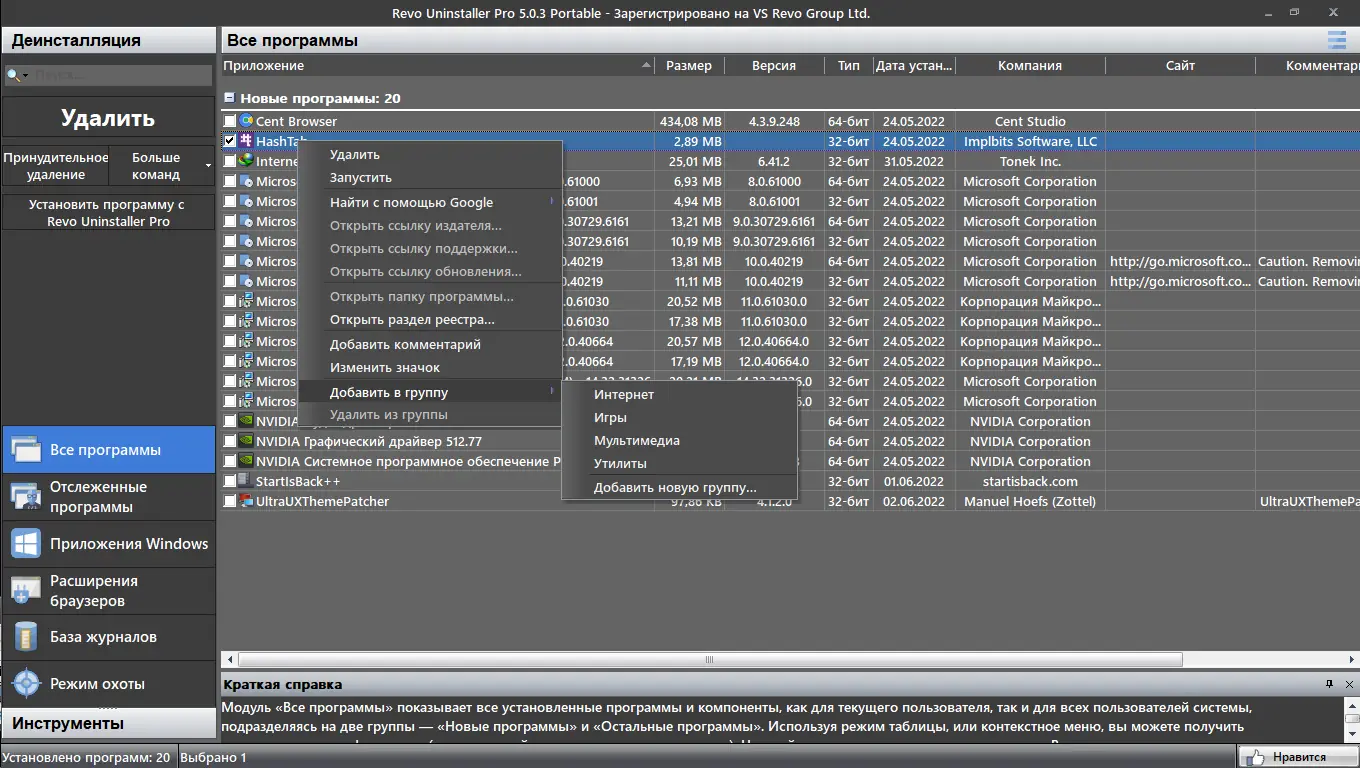 - Утилита эффективно справляется с деинсталляцией программ, оставляя систему чистой от следов ПО