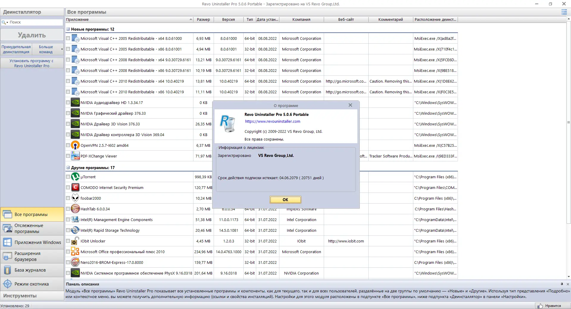Revo Uninstaller сочетает в себе простоту интерфейса и мощь профессионального инструмента для оптимизации системы.