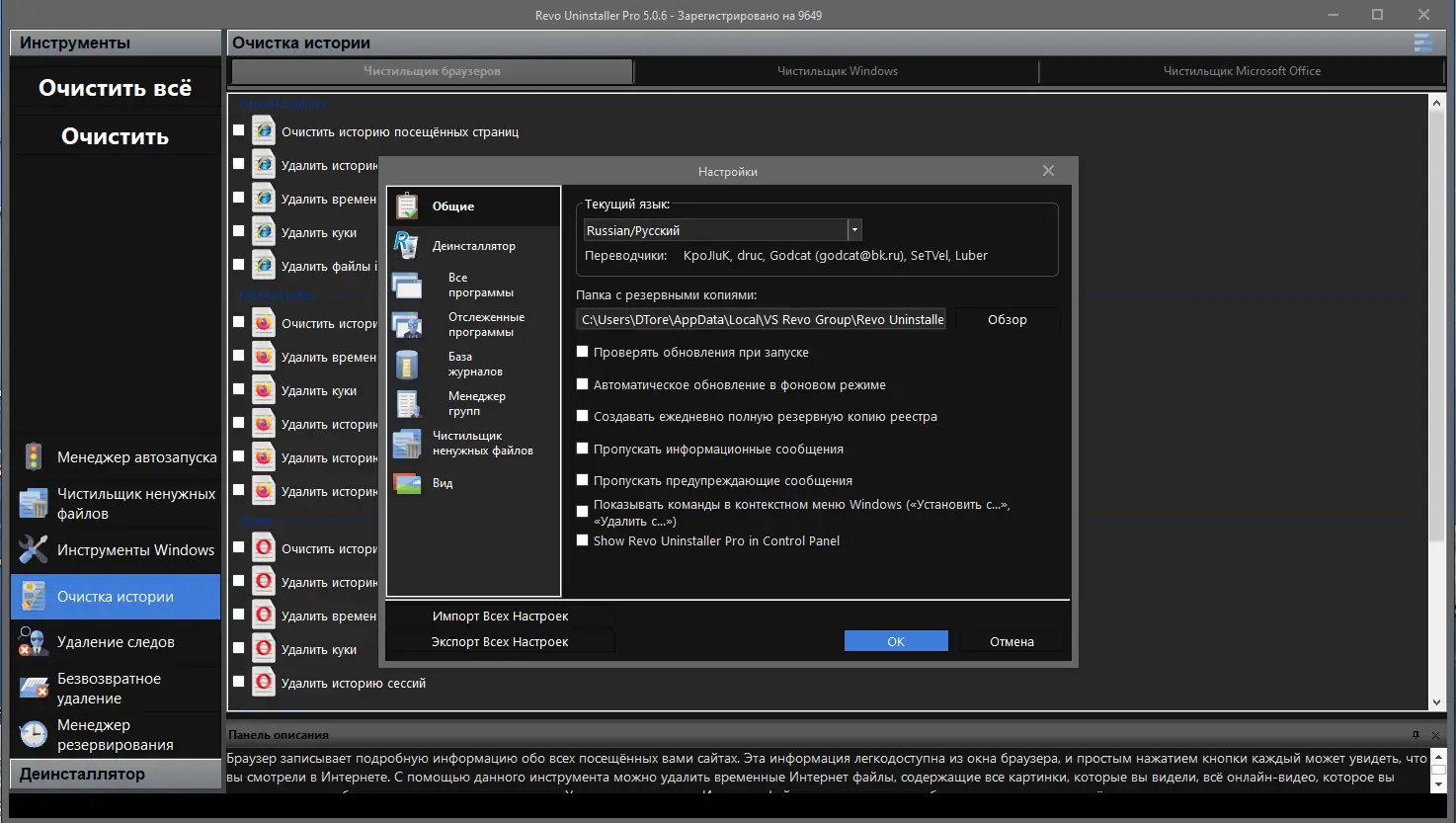 Работа с Revo Uninstaller