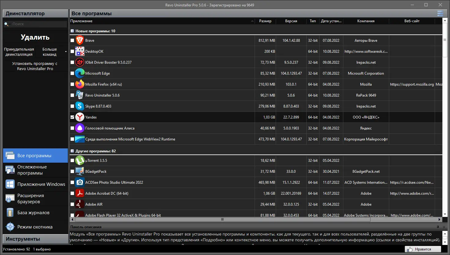 Revo Uninstaller сочетает простоту интерфейса с глубокими возможностями анализа и очистки системы.