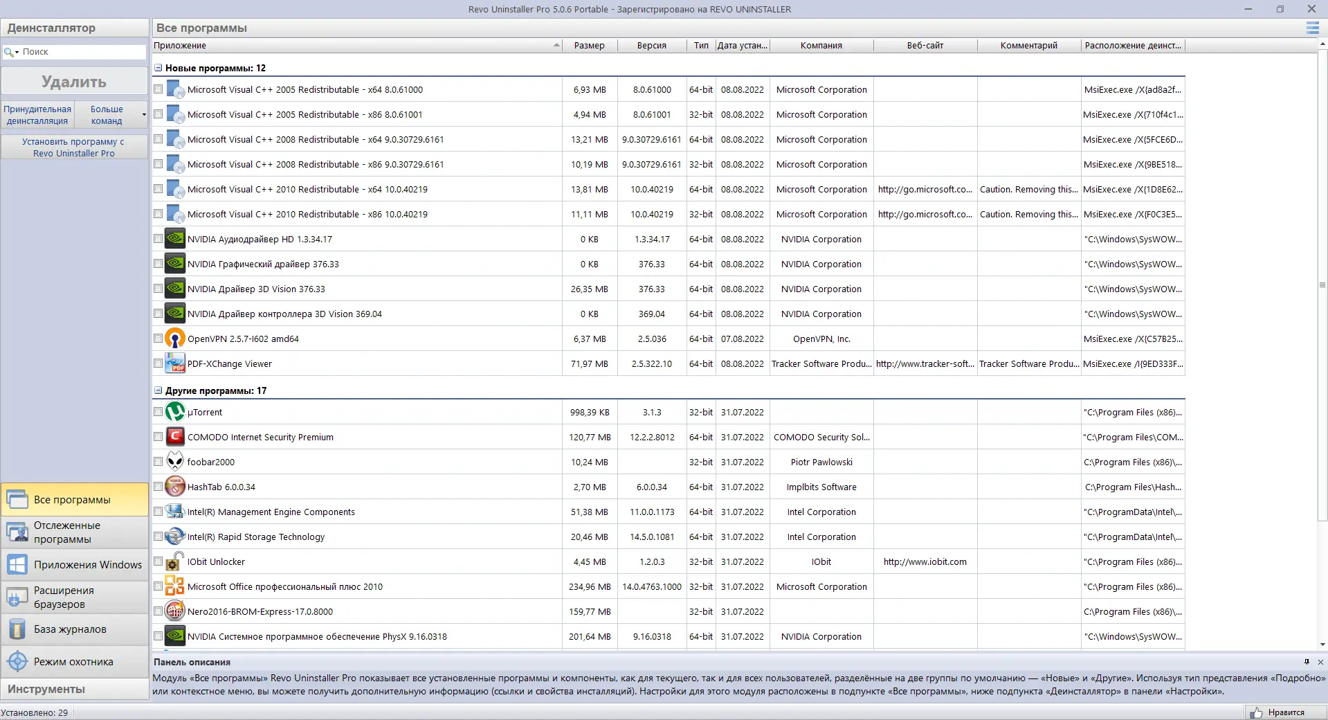 Revo Uninstaller — это мощная система для полного и безопасного удаления программ с компьютера. Программа не только деинсталлирует приложения, но и удаляет все следы, оставшиеся в реестре и файловой системе. Благодаря продвинутому сканированию и уникальному режиму «Охотник», Revo Uninstaller обеспечивает чистоту системы и предотвращает накопление мусора.
