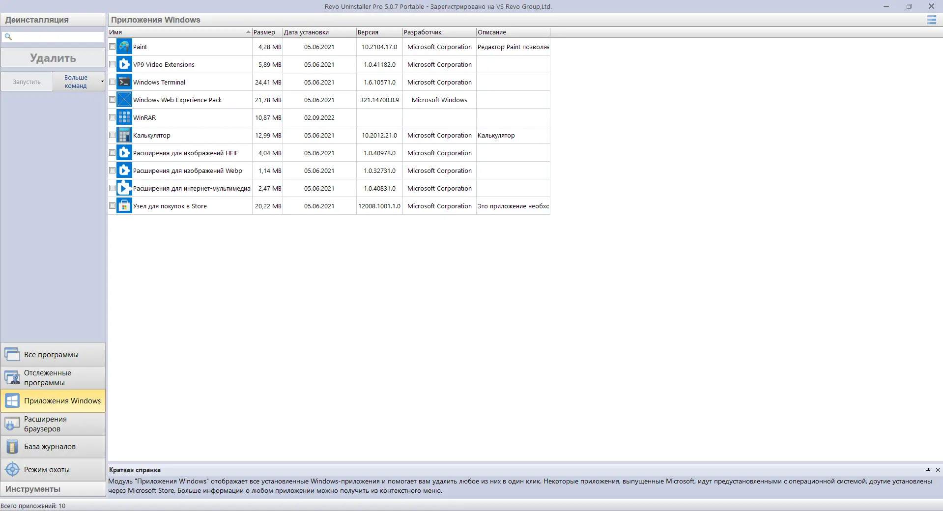 Revo Uninstaller — это мощная утилита для глубокого и безопасного удаления программ с компьютера. Программа эффективно удаляет не только приложения, но и все следы, оставшиеся после их деинсталляции: файлы, папки, записи реестра и данные автозагрузки. Благодаря продвинутому сканированию и специальным режимам очистки, Revo Uninstaller помогает поддерживать систему в чистоте и улучшает её производительность. Поддержка портативной версии и наличие встроенных инструментов делают её незаменимой для пользователей, стремящихся к оптимальной работе Windows.