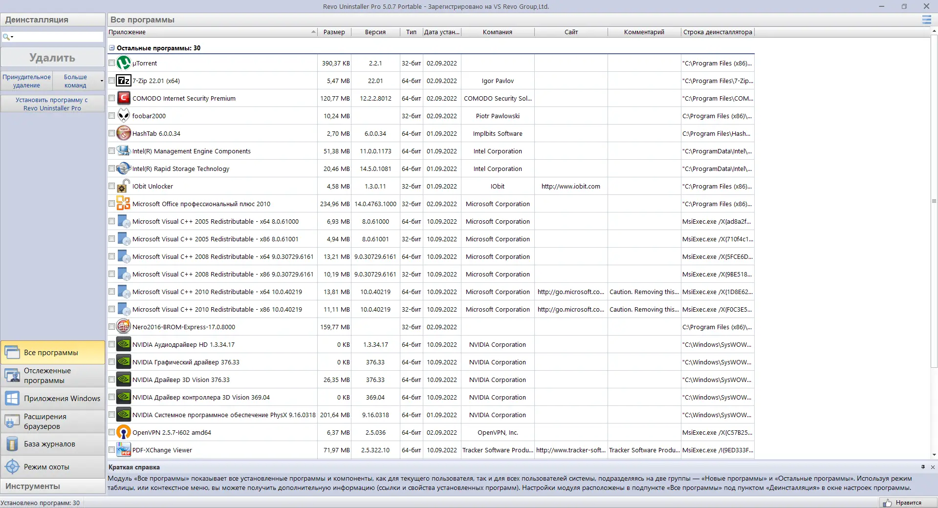Revo Uninstaller — это системная утилита, ориентированная на полное и точное удаление программного обеспечения. В отличие от стандартного деинсталлятора Windows, она анализирует систему до и после удаления приложения, выявляя все оставшиеся элементы. Это позволяет устранить не только основные компоненты программы, но и скрытые файлы, папки, ключи реестра, а также записи автозапуска. Утилита поддерживает работу с различными браузерами, офисными приложениями и системными компонентами, обеспечивая комплексную очистку.