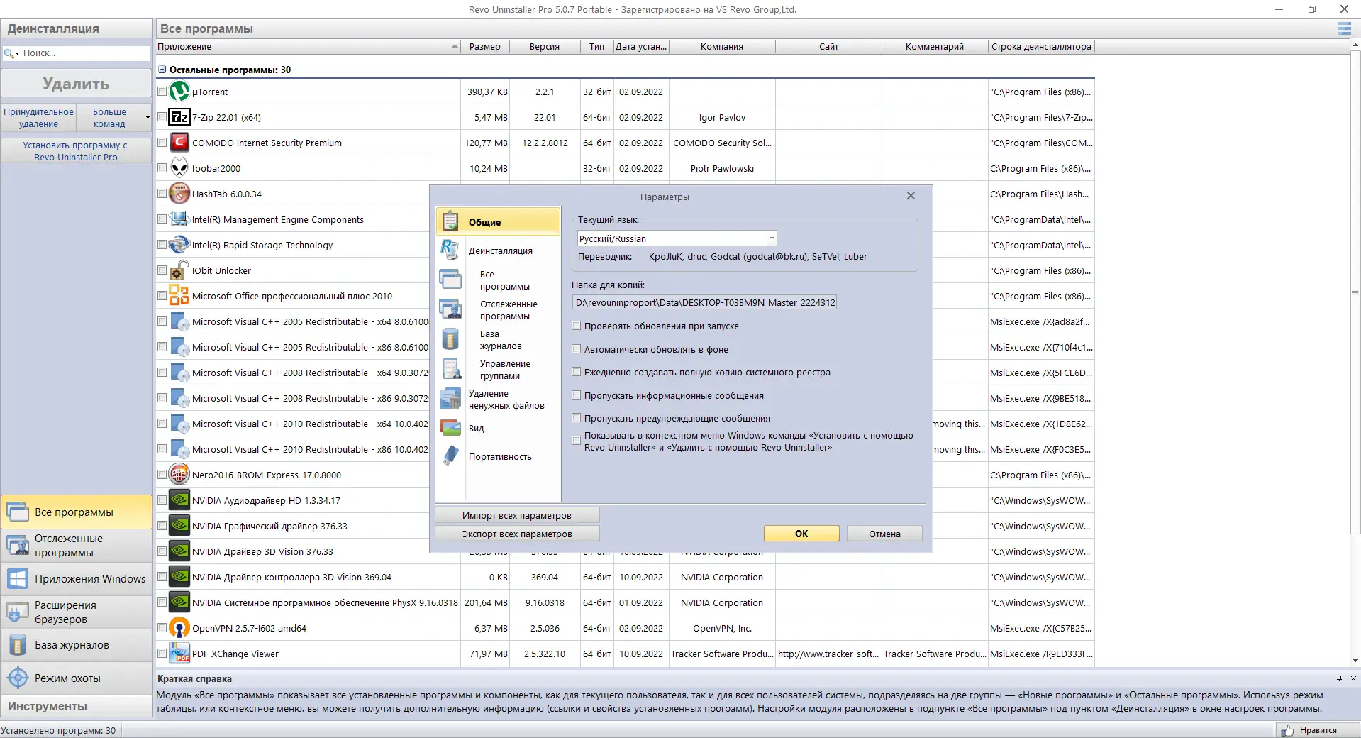 Работа с Revo Uninstaller