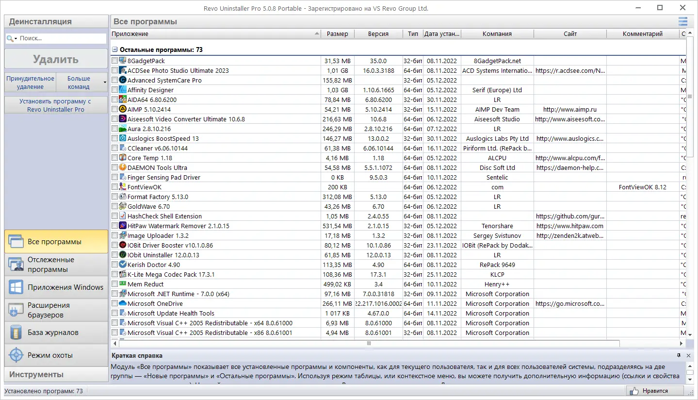 Revo Uninstaller — это мощная утилита для полного и безопасного удаления программ с компьютера, включая все следы в реестре и файловой системе. Инструмент поддерживает расширенное сканирование, принудительную деинсталляцию и встроенные средства очистки системы, обеспечивая высокую производительность и стабильность работы Windows.