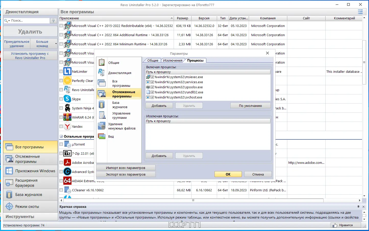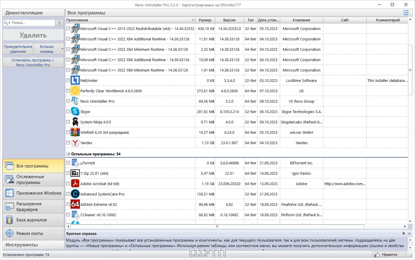 Revo Uninstaller сочетает в себе простоту интерфейса и высокую эффективность при удалении программ и очистке системы.