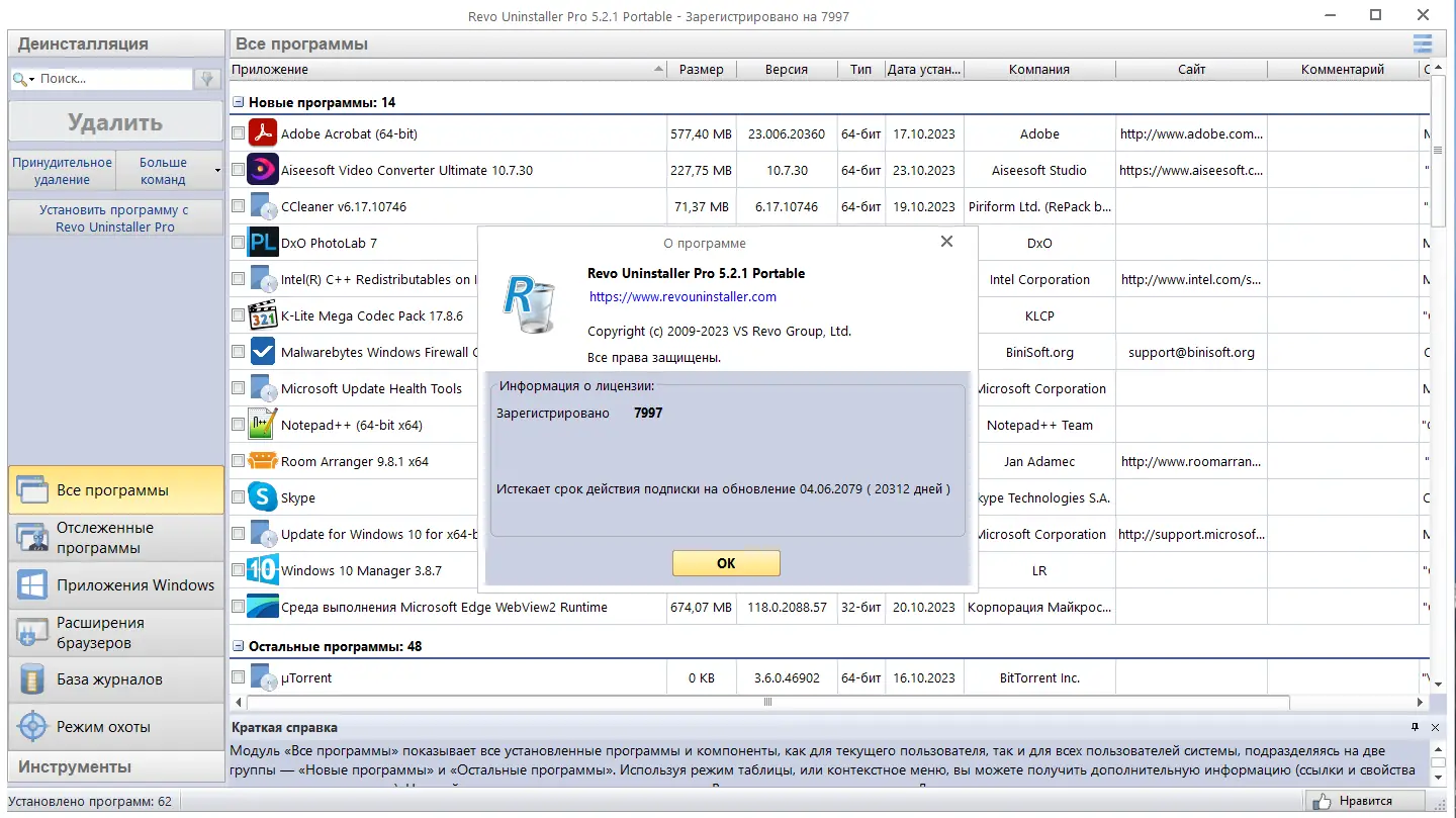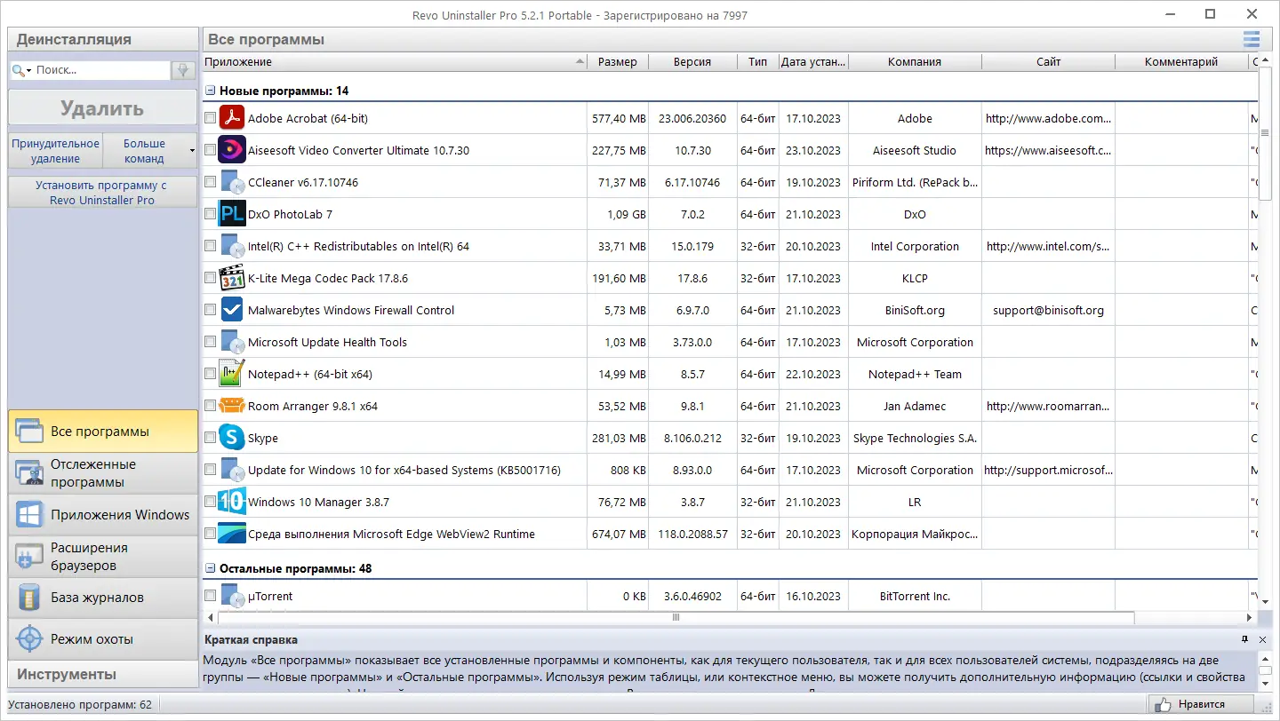 Revo Uninstaller сочетает в себе простоту интерфейса и глубину функционала, что делает его незаменимым инструментом для поддержания чистоты системы.