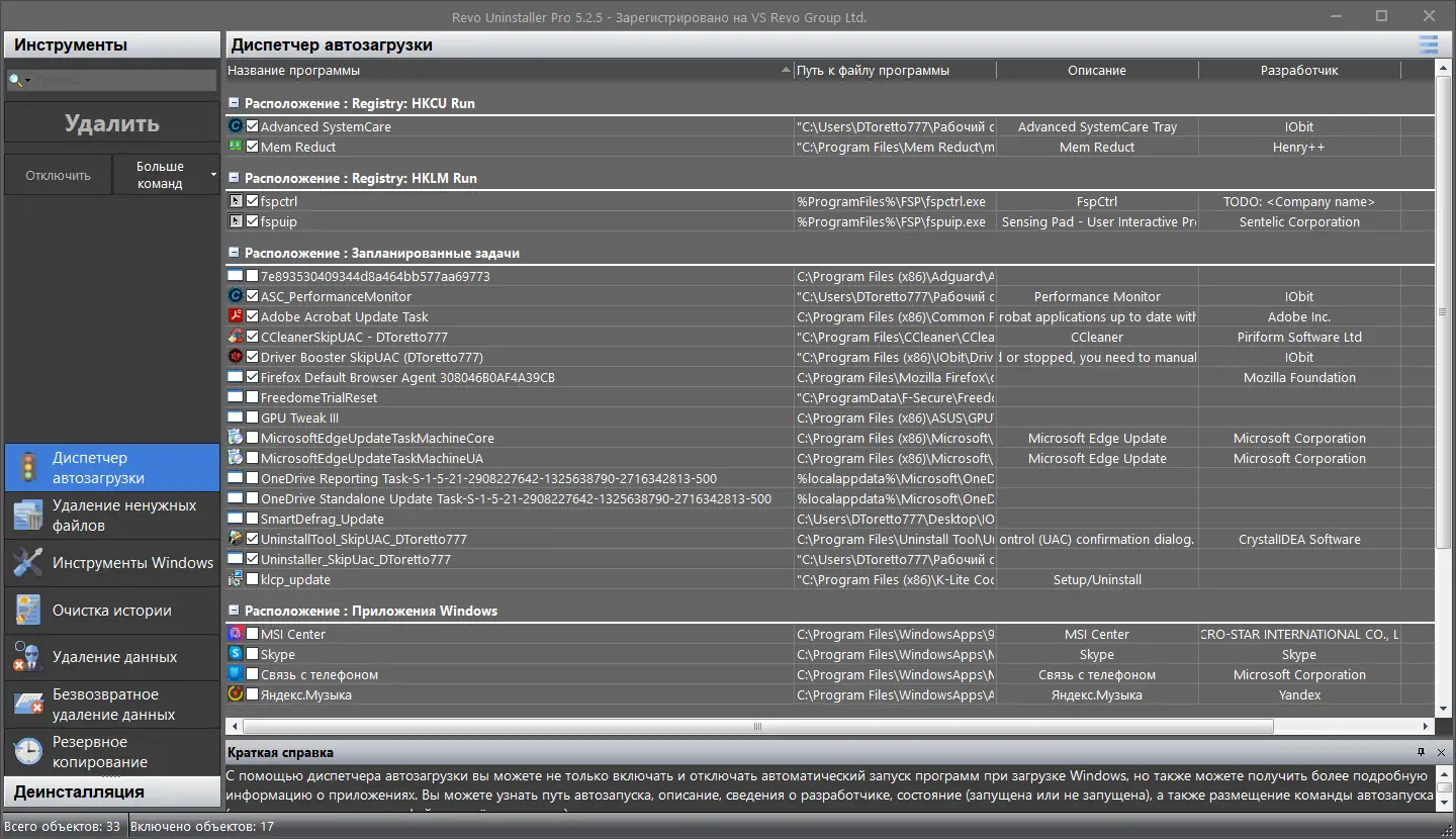 Revo Uninstaller — это мощная утилита для полного и безопасного удаления программ с компьютера. Программа удаляет не только приложения, но и все следы, оставшиеся в системе: файлы, папки, записи реестра и данные автозагрузки. Продвинутые алгоритмы сканирования обеспечивают глубокую очистку после деинсталляции.