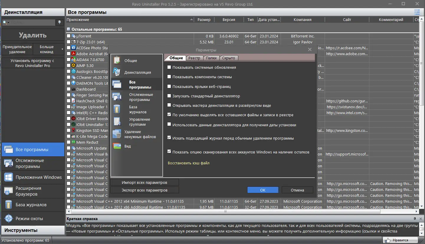 Работа с Revo Uninstaller