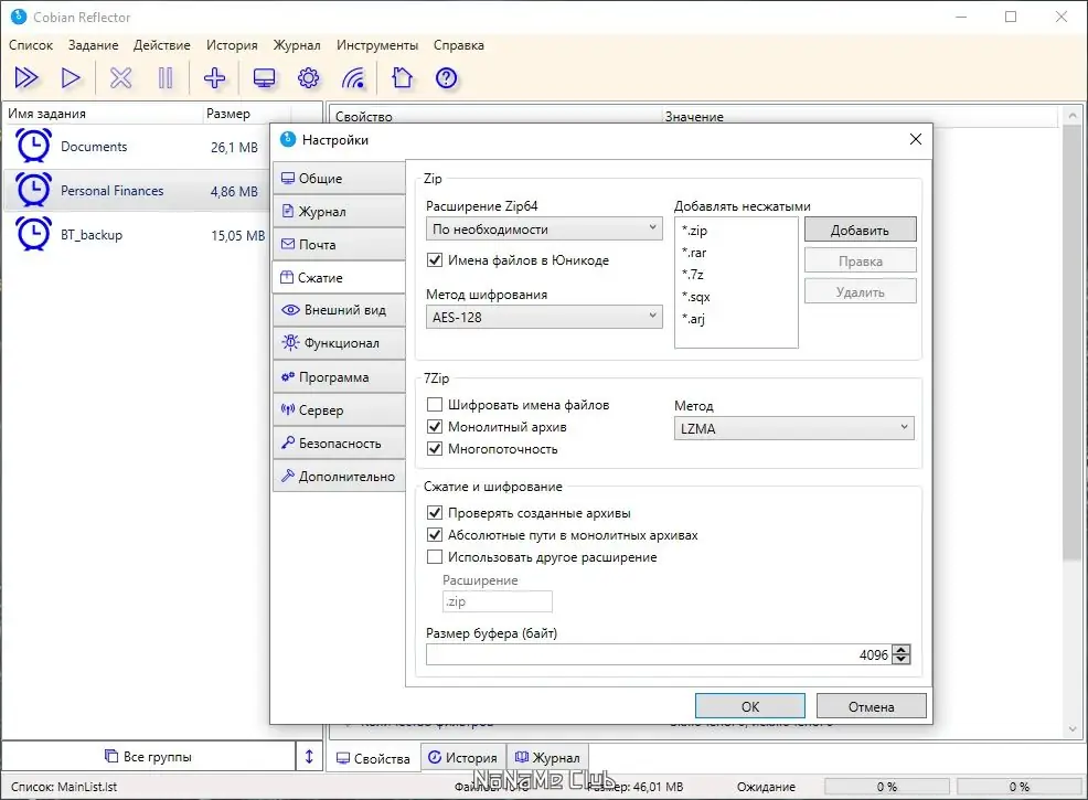 - Генерация имён файлов резервных копий по заданному шаблону с датой и временем