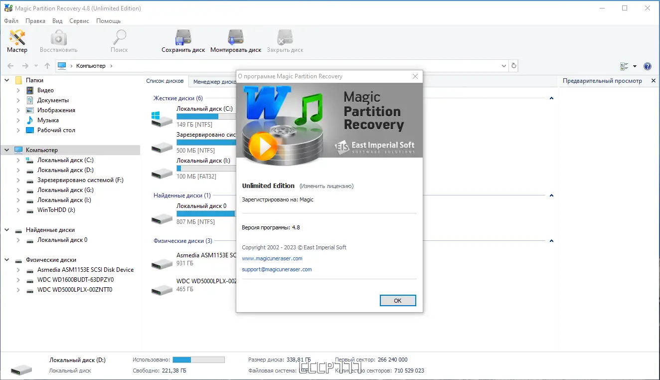 Magic Partition Recovery — мощное решение для восстановления данных с повреждённых, отформатированных или нечитаемых носителей. Программа эффективно работает с жёсткими дисками, SSD, флеш-накопителями и другими устройствами хранения, восстанавливая как отдельные файлы, так и целые разделы. Поддержка всех популярных файловых систем и наличие продвинутых инструментов анализа делают её незаменимой при аварийном восстановлении информации.