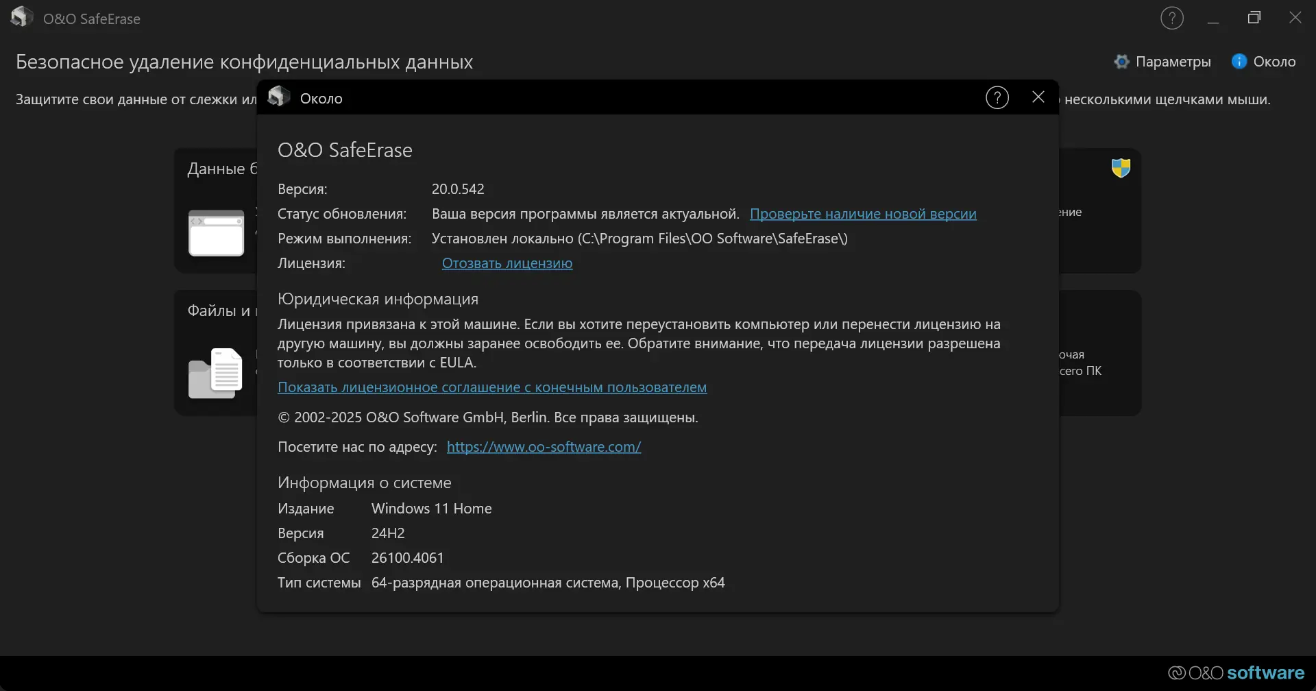 Программа доступна в виде RePack, не требующего активации и поддерживающего русский язык. Установка может выполняться в тихом режиме с использованием параметров /SILENT или /VERYSILENT, что удобно для массового развёртывания. RePack автоматически подхватывает пользовательские настройки при наличии файла OOSafeErase.cfg. Перед установкой новой версии необходимо удалить предыдущую. Распространение осуществляется бесплатно, с полной поддержкой операционных систем Windows 7, 8.1, 10 и 11 разрядностью 32 и 64 бит.