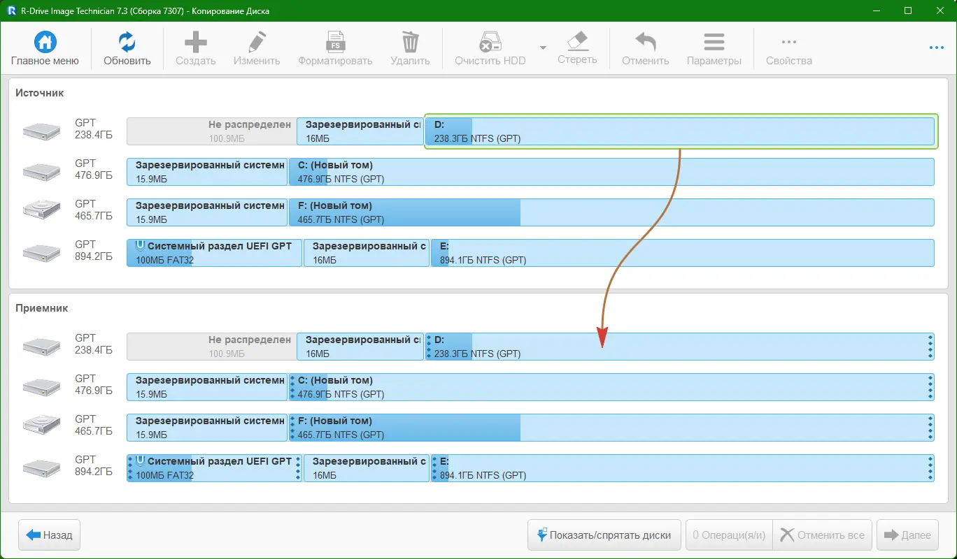 Работа с R-Drive Image
