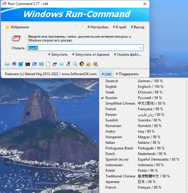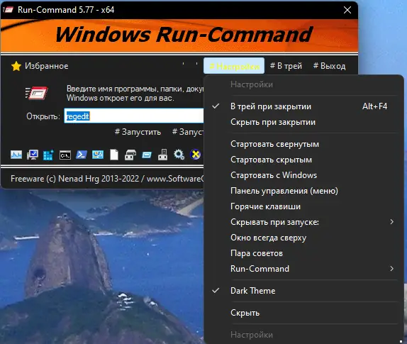 Run-Command — это компактная утилита для операционной системы Windows, призванная заменить стандартное окно «Выполнить» с расширенным функционалом и повышенным удобством использования. Программа позволяет быстро запускать команды, утилиты и приложения, включая выполнение с правами администратора, работу с избранными командами и настройку горячих клавиш. Благодаря портативности и поддержке нескольких языков, включая русский, она подходит для широкого круга пользователей.