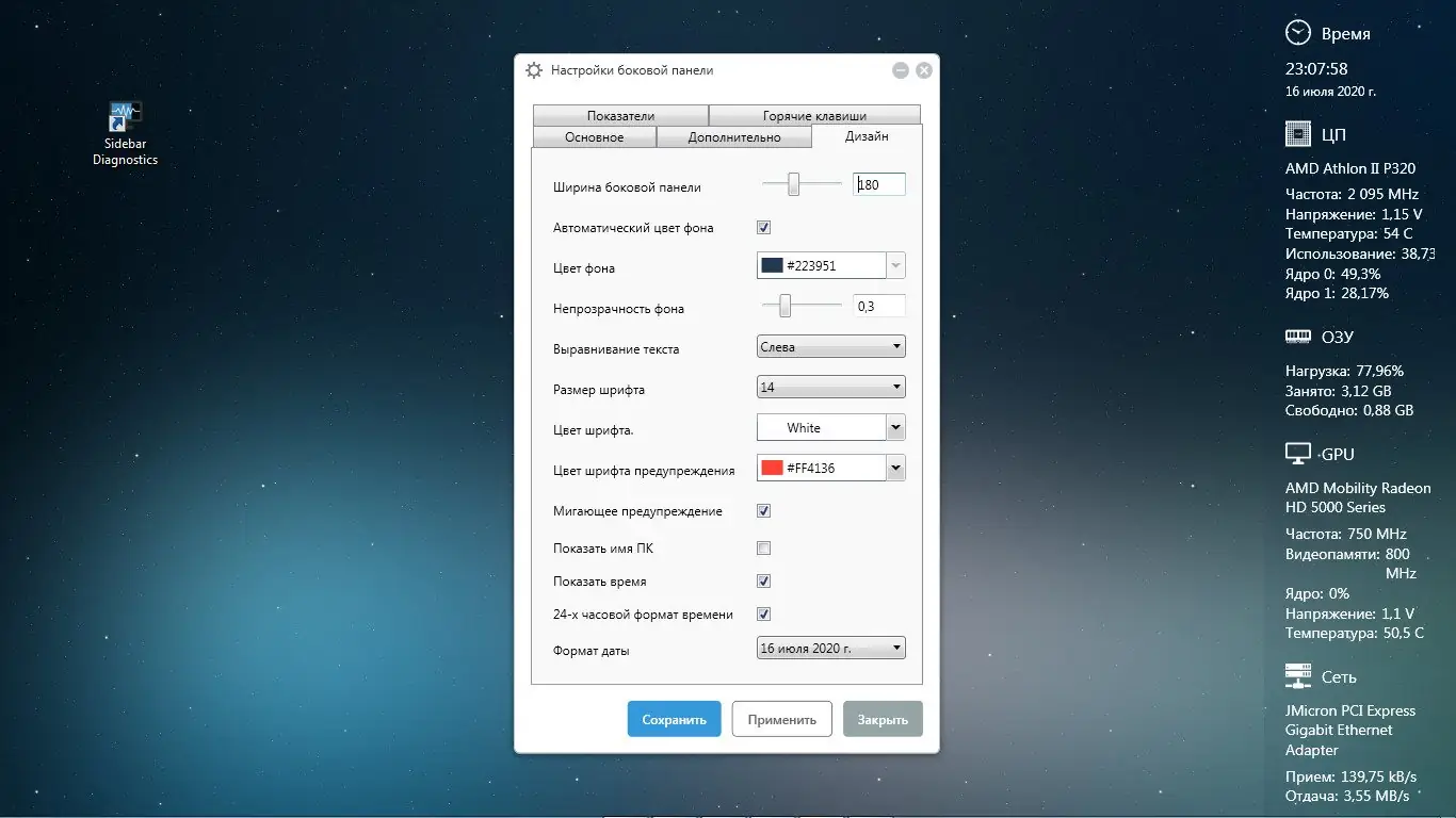 Sidebar Diagnostics — это системная утилита, разработанная для пользователей, которым важно контролировать состояние своего компьютера без перегрузки интерфейса. В отличие от традиционных мониторов ресурсов, программа интегрируется в рабочий стол в виде боковой панели, не закрывая при этом другие окна. Это делает её особенно удобной для длительной работы, игр или выполнения ресурсоёмких задач. Панель может быть настроена под индивидуальные предпочтения: можно скрывать ненужные блоки, изменять цветовую схему, задавать частоту обновления данных. Утилита не требует установки в некоторых версиях и может работать в портативном режиме.