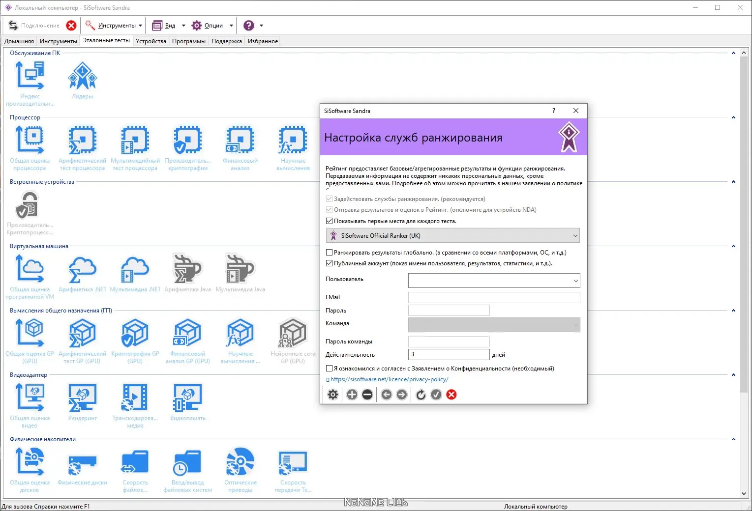 - Проведение тестов производительности CPU, GPU, дисковых накопителей и сетевых интерфейсов.
